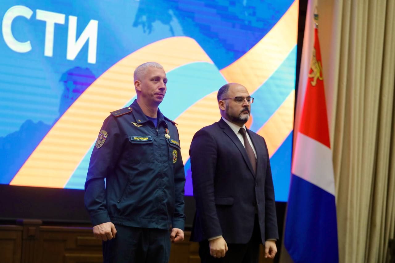 26 декабря в Большом зале Правительства Приморского края состоялось торжественное собрание в честь Дня спасателя Российской Федерации и 35-летия МЧС России. На мероприятии присутствовали: митрополит Владивостокский и Приморский Павел, исполняющий обязанности губернатора Приморского края Дмитрий Мариза, глава г. Владивостока Константин Шестаков, начальник Главного управления МЧС России по Приморскому краю генерал-лейтенант Роман Чурсин, командующий Тихоокеанским флотом ВМФ России Виктор Лиина и другие почетные гости.