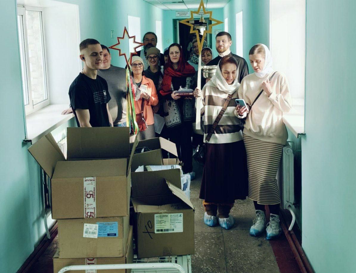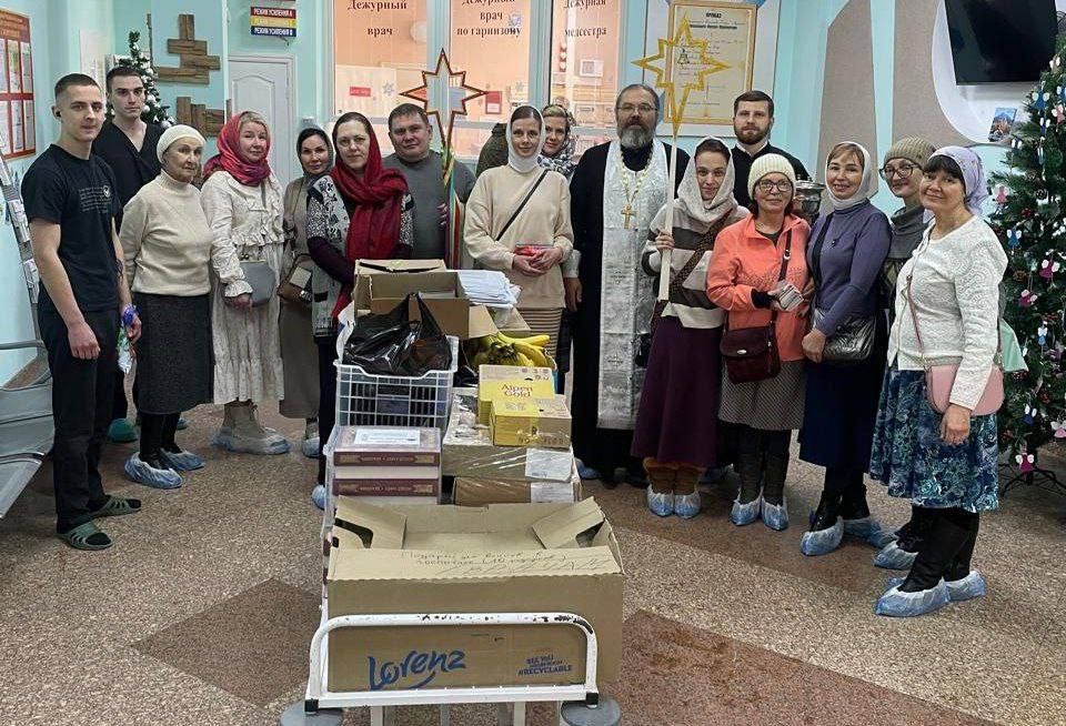 С пением тропаря Рождества Христова и колядок верующие обошли все палаты. Среди больных были как участники СВО, так и солдаты срочной службы. Каждому из них вручили подарок и информационные листовки о православной духовной жизни.