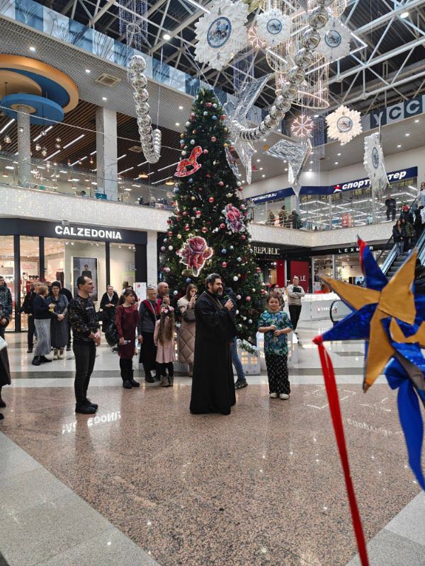 Затем праздник переместился в торговый центр «Уссури Молл». Посетители услышали песни, посвященные Рождеству Христову, в исполнении сводного хора певчих храмов г. Уссурийска. В мероприятии также приняли участие воспитанники воскресных школ города.