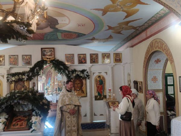 Литургию престольного праздника совершил настоятель храма протоиерей Анатолий Колесников. По окончании богослужения прихожане поздравили батюшку с праздником Рождества Христова и вручили букет белых роз. К поздравлениям также присоединились общины молитвенной комнаты с. Барабаш и храма свт. Николая Чудотворца п. Краскино, окормляемые отцом Анатолием.