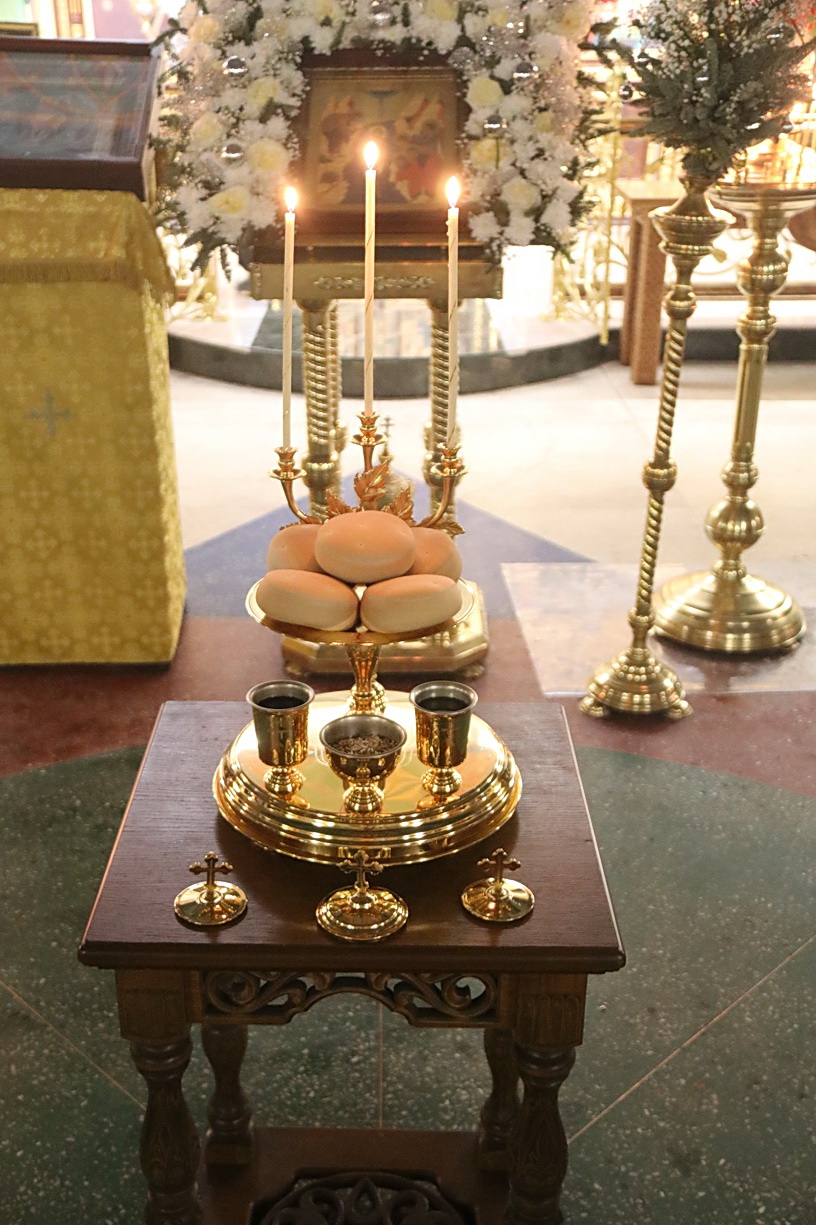 Праздничное богослужение включало в себя последование Великого повечерия, чина литии с освящением хлебов и полиелейной утрени, за которым было пропето величание Святому Богоявлению.