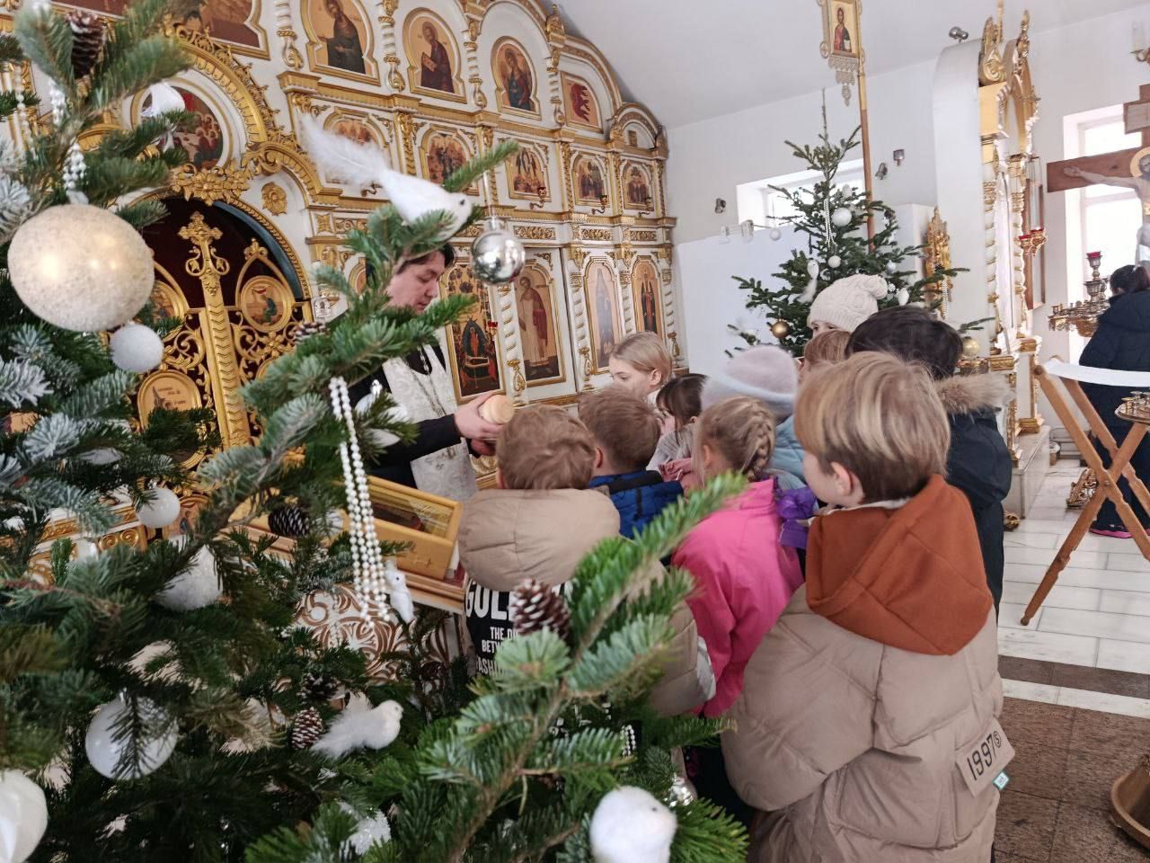 Знакомство с храмом началось с рассказа об устройстве алтаря и богослужебных предметах: кресте, Евангелии и кадиле. Также дети узнали о Таинстве Причастия. В завершение беседы батюшка угостил ребят просфорой и предложил испить крещенской воды.