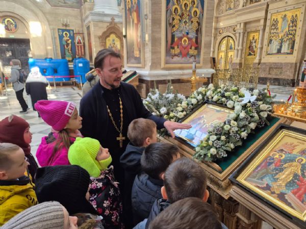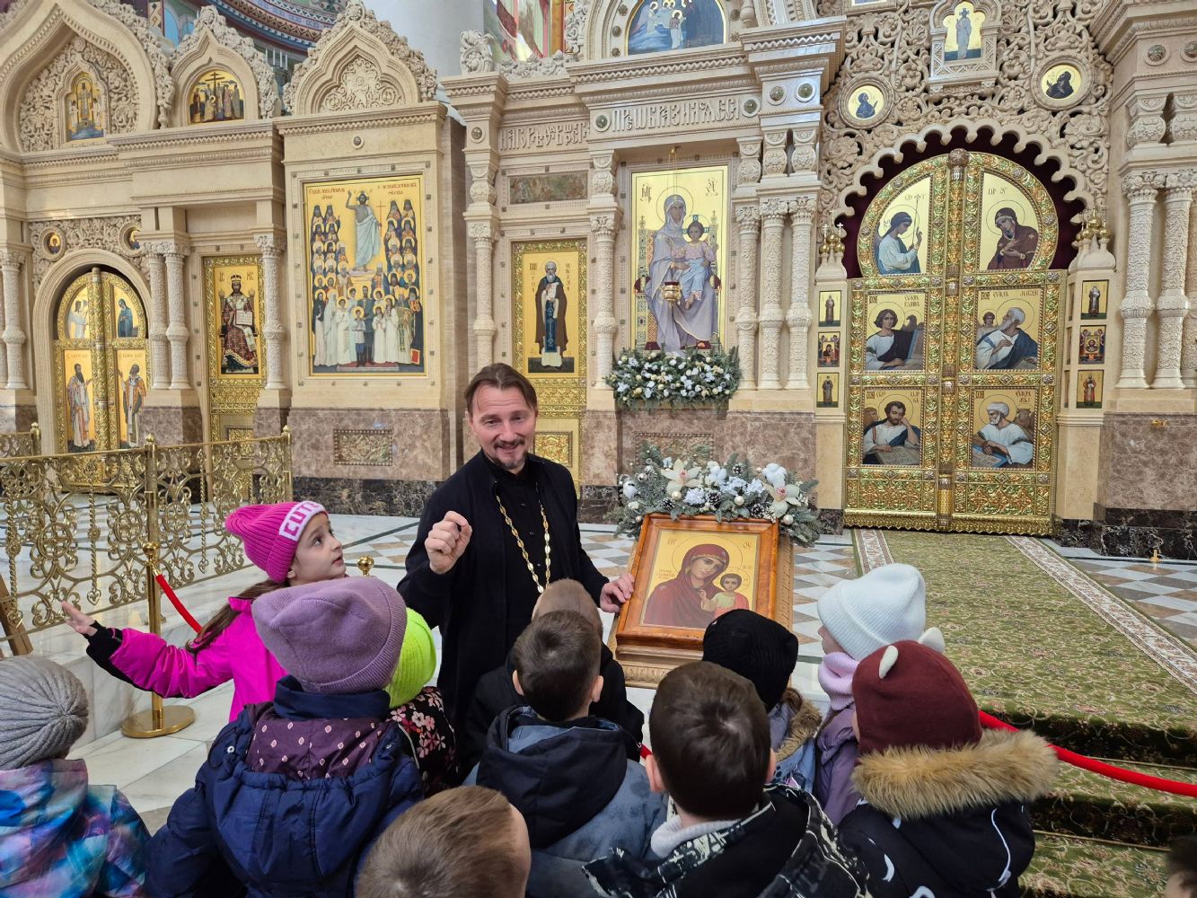 28 января учащиеся 1-го класса МБОУ «Начальная общеобразовательная школа № 10» г. Владивостока посетили Спасо-Преображенский кафедральный собор. Встретил юных гостей клирик собора иерей Димитрий Винокуров.