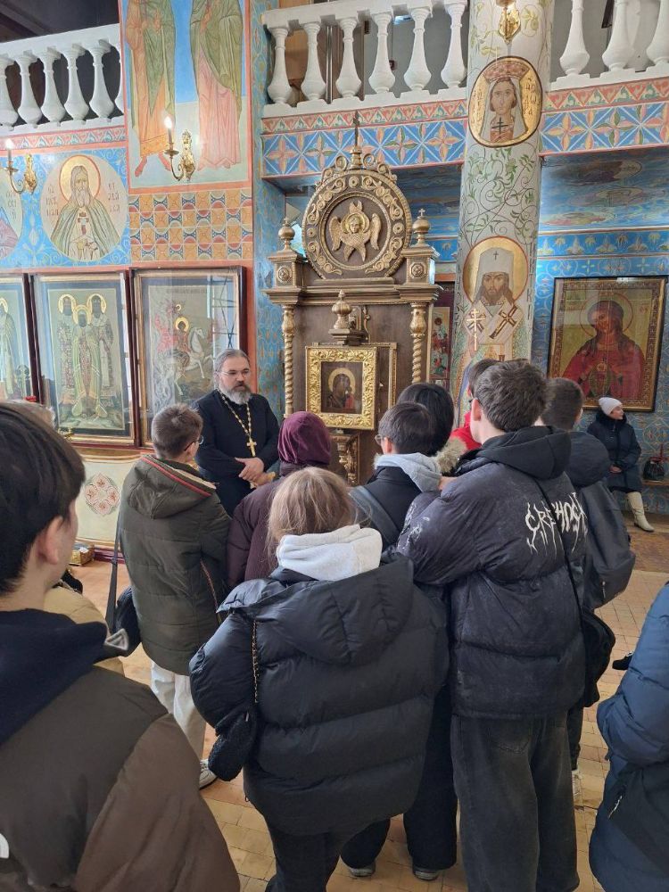 Иерей Илия Точуков, настоятель храма, провел для гостей экскурсию. Батюшка рассказал ребятам об устройстве храма и показал особо чтимые храмовые святыни. После экскурсии встреча продолжилась в трапезной за чашкой чая и беседой о духовной жизни.