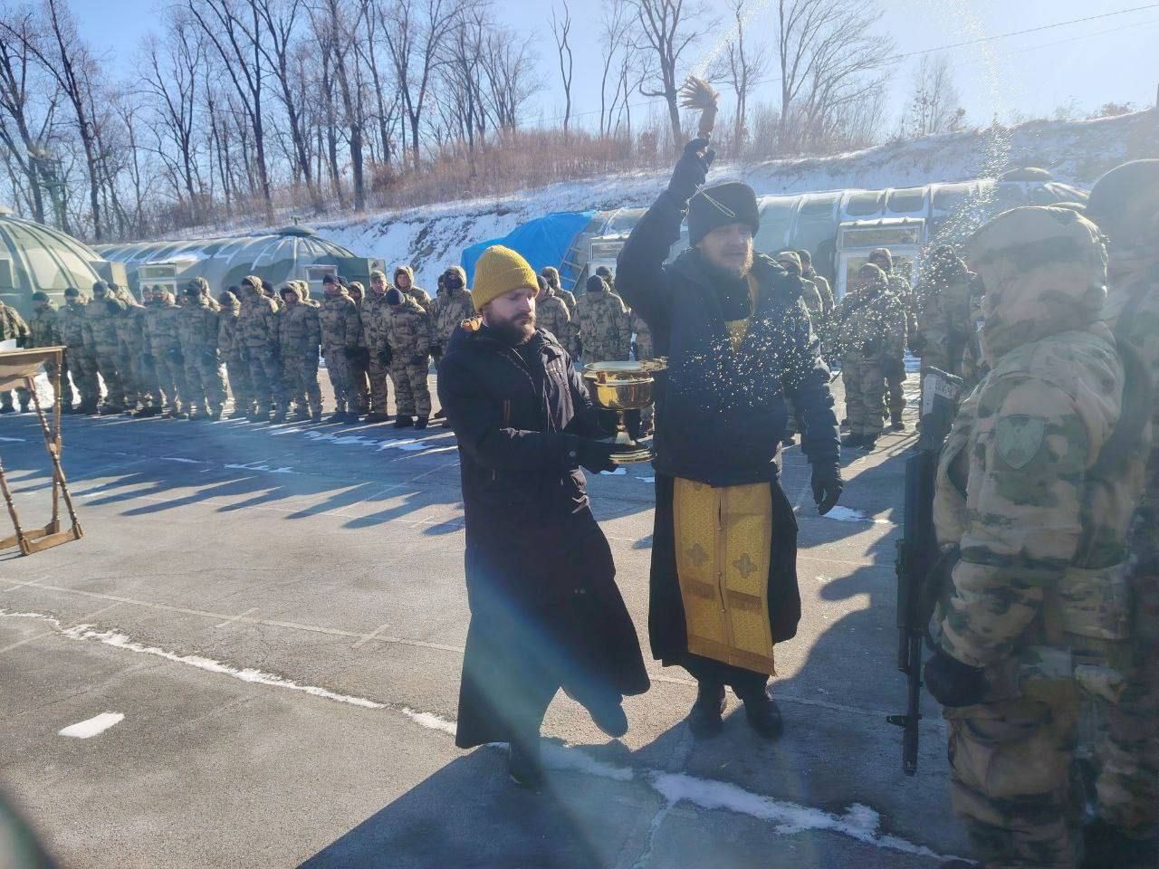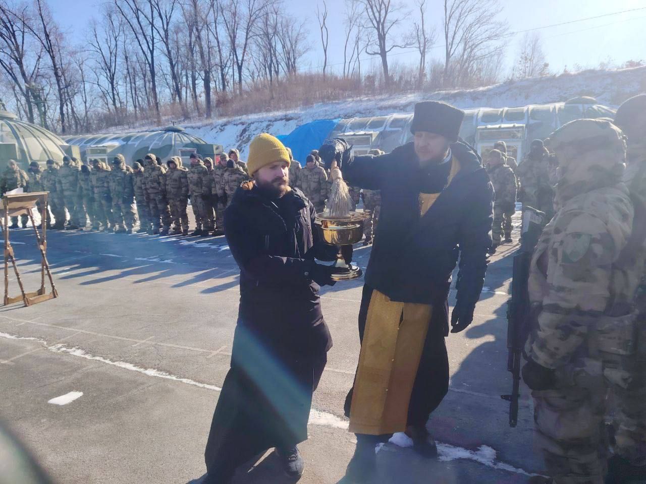 8 февраля на тренировочном полигоне г. Артёма состоялось построение подразделений, готовящихся к убытию в зону боевых действий СВО. По сложившейся традиции перед выполнением служебных задач военнослужащих благословил священник.