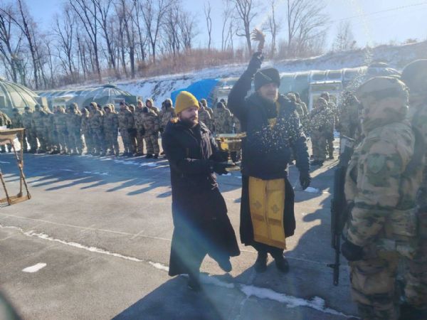 Настоятель храма Богоявления г. Артёма иерей Дионисий Ищенко совершил чин молебного пения ко Господу Богу о воинах, идущих на брань. Обратившись к бойцам с напутственным словом, отец Дионисий подчеркнул, что защита Родины всегда была и остается священным долгом христианина.