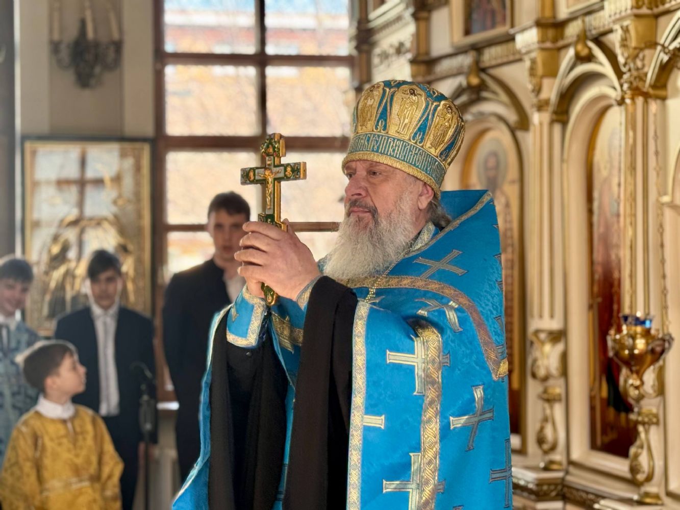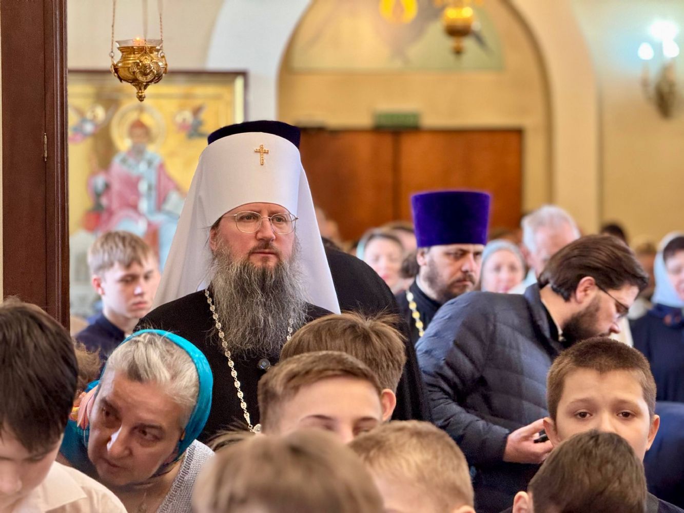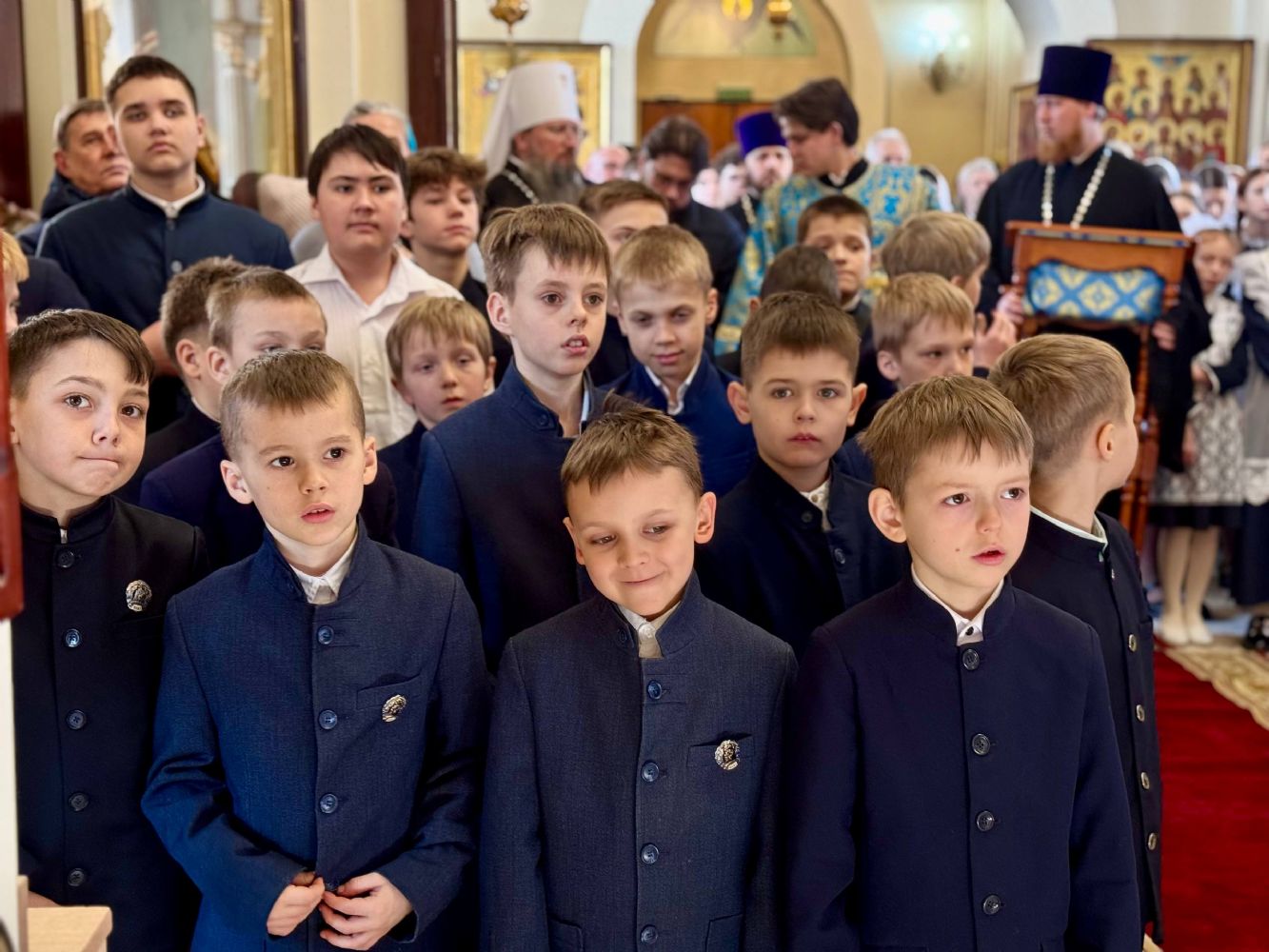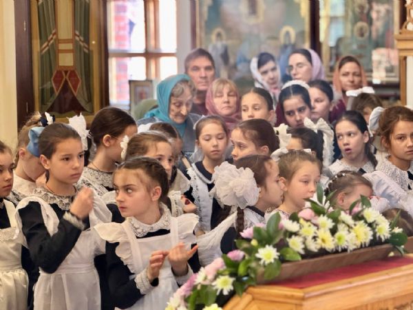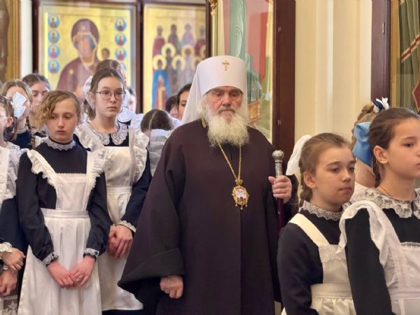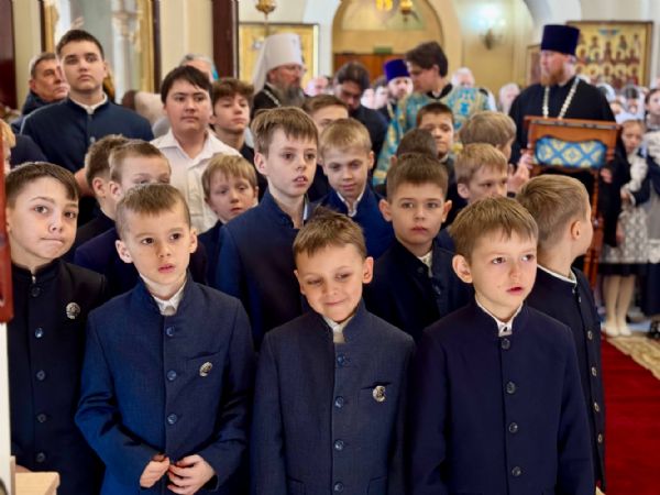За богослужением также молились митрополит Вениамин (Пушкарь) и ученики Православной гимназии.