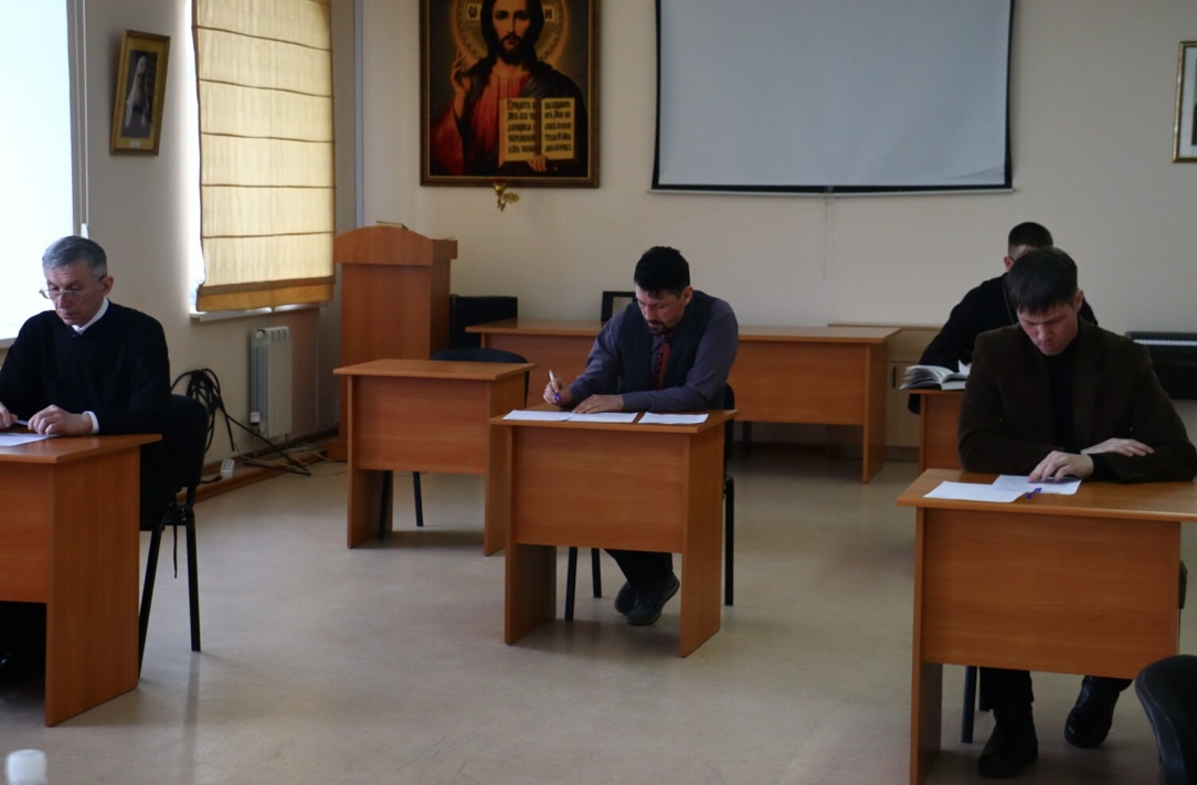 Первым этапом стал междисциплинарный экзамен, призванный выявить уровень общей богословской подготовки выпускников. Работу экзаменационной комиссии возглавил Преосвященнейший Николай (Ашимов), епископ Амурский и Чегдомынский. В состав комиссии также вошли представители профессорско-преподавательской корпорации Хабаровской духовной семинарии.