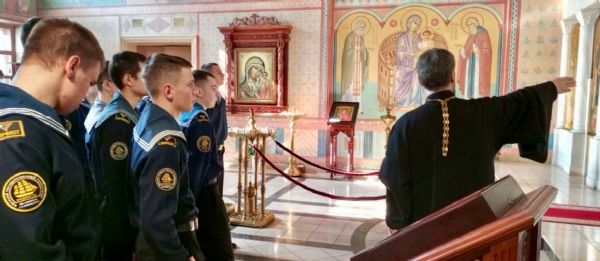 17 февраля в храме Казанской иконы Божьей Матери г. Владивостока прошла экскурсия курсантов Морского инженерного колледжа Морского государственного университета имени адмирала Г.И. Невельского. Гостей встретил клирик храма иерей Роман Бурдинский.