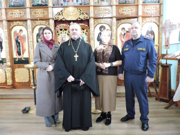 Провел встречу настоятель храма иерей Владимир Григорьев совместно с помощником настоятеля Евгенией Рязановой, заместителем начальника по воспитательной работе ИК-41 и психологами колонии Юлией Волчковой и Ириной Колесниченко.