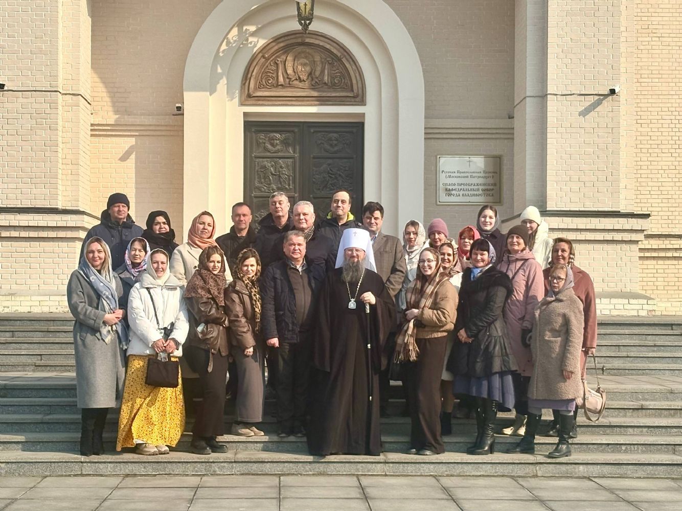 На паперти главного храма Приморья гостей сердечно поприветствовал митрополит Владивостокский и Приморский Павел. Затем все присутствующие сделали общее фото на память.