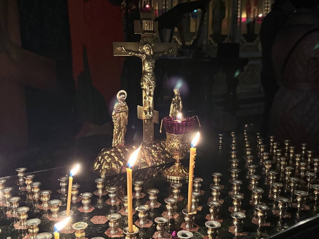 Свет в храме погасили — только свечи и лампады создавали особую атмосферу, располагающую к сосредоточенному вниманию. В программе прозвучали песнопения Великого поста, которые обращают душу к покаянию, очищению и созерцанию вечности.