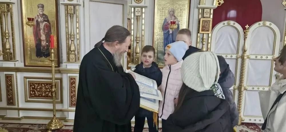 Экскурсию для школьников провёл клирик храма протоиерей Андрей Метелёв. Священнослужитель рассказал детям о том, как устроен православный храм, какие бывают архитектурные виды церквей, познакомил с внутренним убранством и главными святынями прихода. Особое внимание было уделено устройству алтаря — самому святому месту храма.