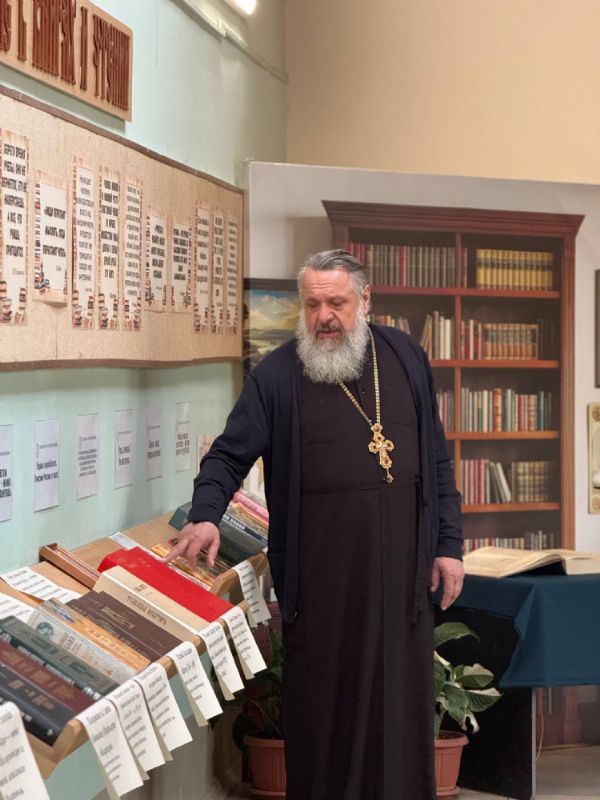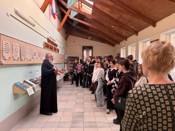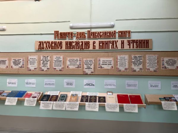 После беседы школьники посетили выставку «Духовное наследие в книгах и чтении», организованную ко Дню православной книги.