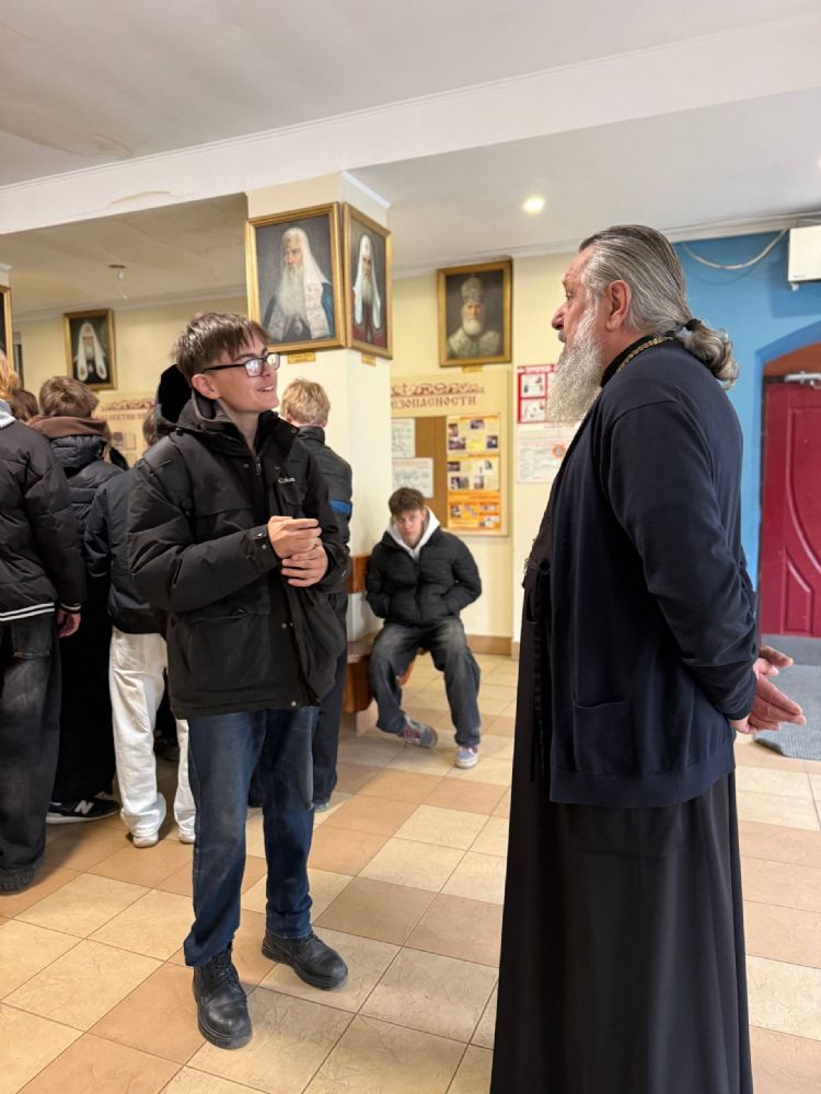 Настоятель, протоиерей Игорь Талько, познакомил ребят с историей и устройством храма, а также с житием святых, в честь которых он освящен.