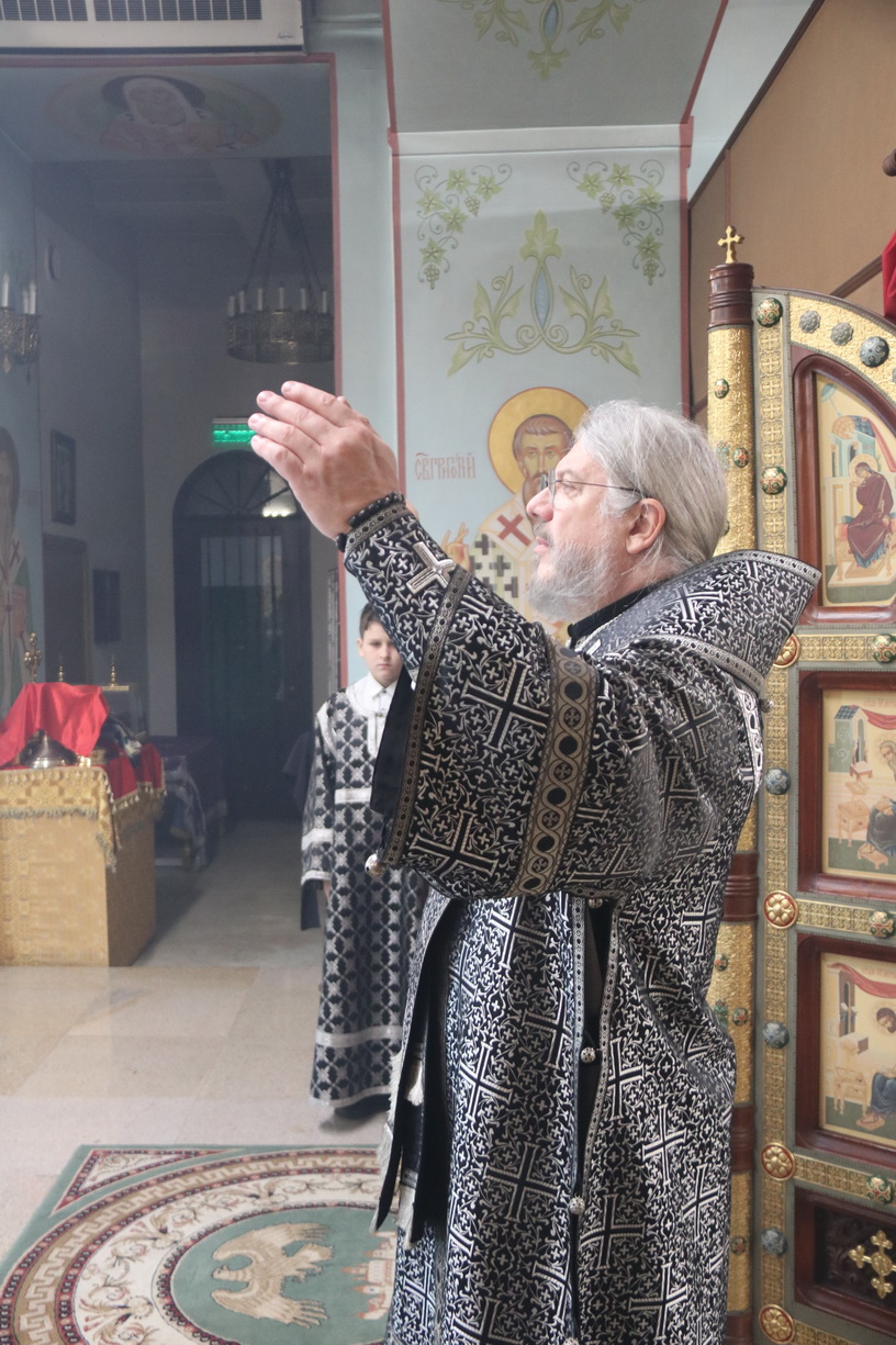 В среду 6-ой седмицы Великого Поста, памяти прпп.Иоанна, Сергия, Патрикия и прочих в обители св.Саввы убиенных, патриарха Константинопольского, епископ Находкинский и Преображенский Николай возглавил Литургию Преждеосвященных Даров в Казанском Кафедральном соборе г. Находки.
