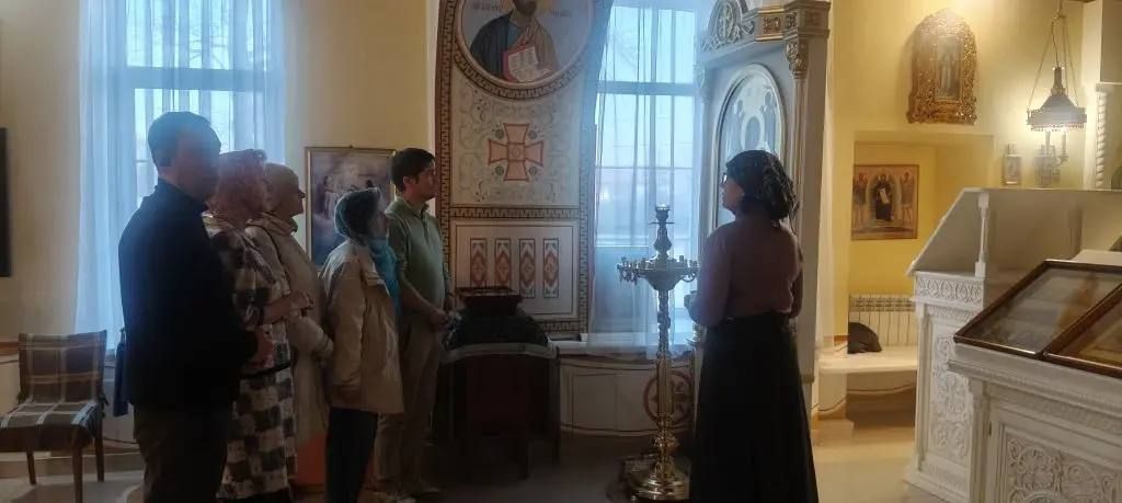 В ходе встречи Ирина Ивановна подробно рассказала гостям об устройстве храма, истории его прихода и святынях. Особое внимание было уделено не так давно прибывшим в храм, но очень почитаемым иконам: образу 40 мучеников Севастийских и иконе Божией Матери «Всецарица». Также участники экскурсии узнали о святых, в земле Дальневосточной просиявших, и их значении для духовной жизни региона.