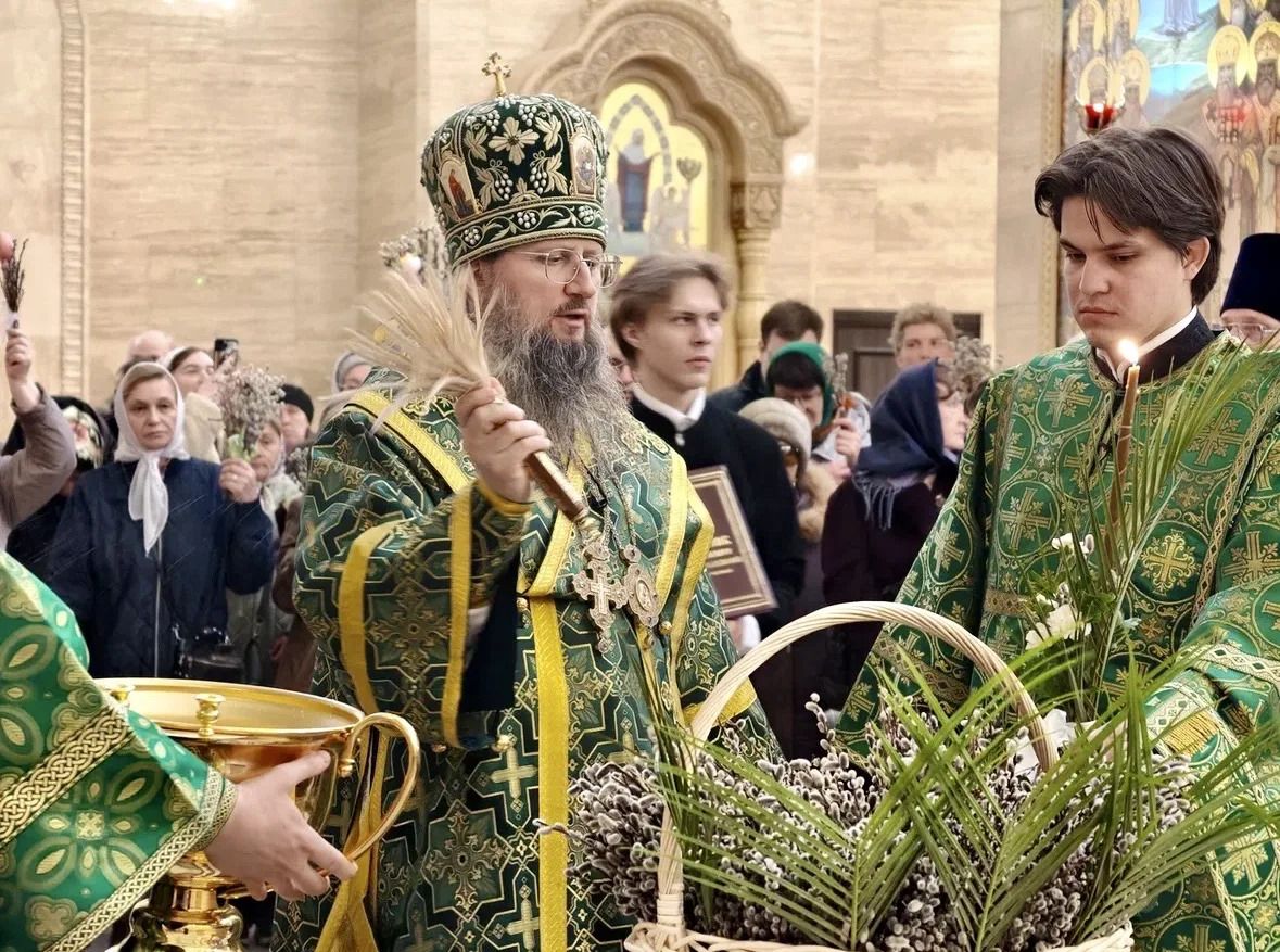 Во время богослужения правящий архиерей совершил чин освящения верб.