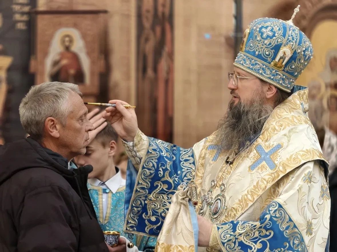 Во время богослужения владыка Павел освятил пять хлебов, вино и елей, а также совершил Елеопомазание, символизирующее Божию милость ко всем, кто приносит покаяние.
