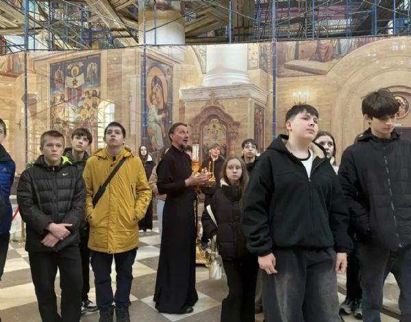 Для учащихся была организована экскурсия по главному храму Приморья, которую провели иерей Александр Соколов и иерей Димитрий Винокуров. Батюшки рассказали ребятам о воскресении Лазаря, празднике Входа Господня в Иерусалим, и о том, как вера способна менять жизнь человека на примере св. равноапостольного князя Владимира.