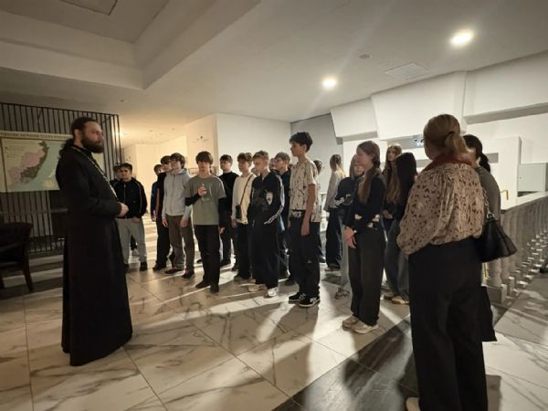 После экскурсии в зале Церковных собраний состоялся просмотр фильма «За имя Мое…», который поднимает важные духовные и нравственные вопросы. По завершении просмотра иеромонах Марк (Корнилов) обсудил с детьми просмотренный фильм, подробно раскрыл смысл картины и ответил на вопросы, возникшие у юных зрителей.