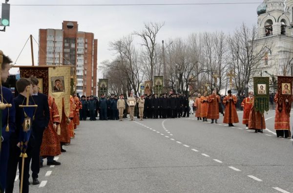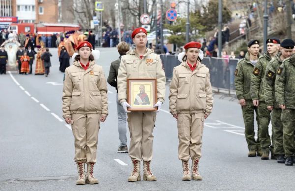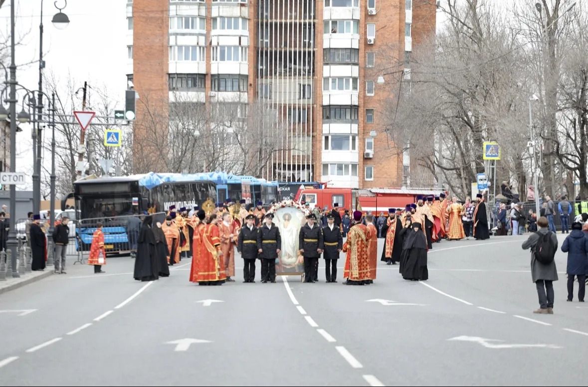 Колокольный звон, иконы в руках, стройные ряды духовенства в алых облачениях, с крестами и хоругвями — так торжественно и духоподъёмно выглядел Океанский проспект.