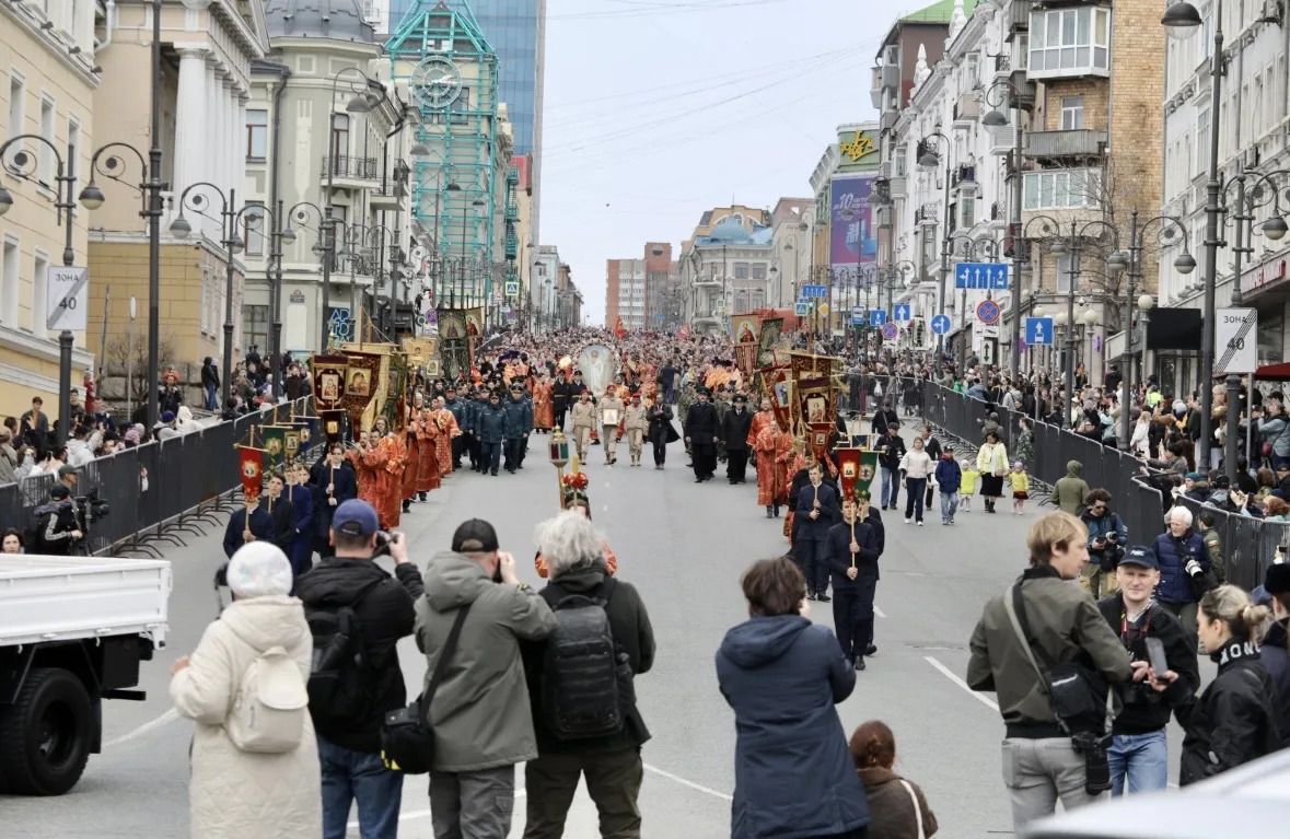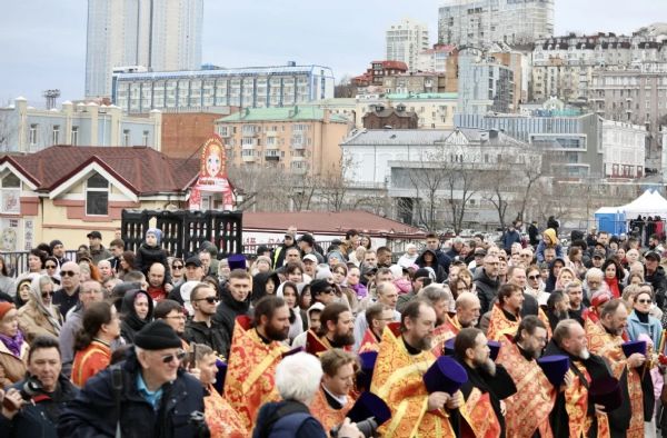 12 апреля, в день празднования Светлой Пасхи, жители Владивостока приняли участие в торжественном крестном ходе по Океанскому проспекту. Шествие началось от храма Покрова Пресвятой Богородицы и завершилось у Спасо-Преображенского кафедрального собора.