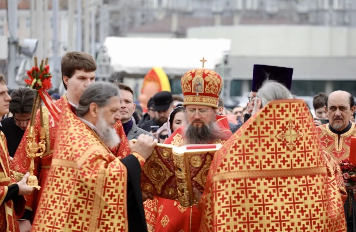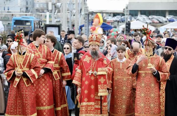 Молитвенное шествие завершилось на паперти Спасо-Преображенского собора, где было совершено богослужение перед иконой Воскресения Христова. По окончании службы владыка Павел поблагодарил всех за совместную молитву и пригласил на Пасхальные гуляния.