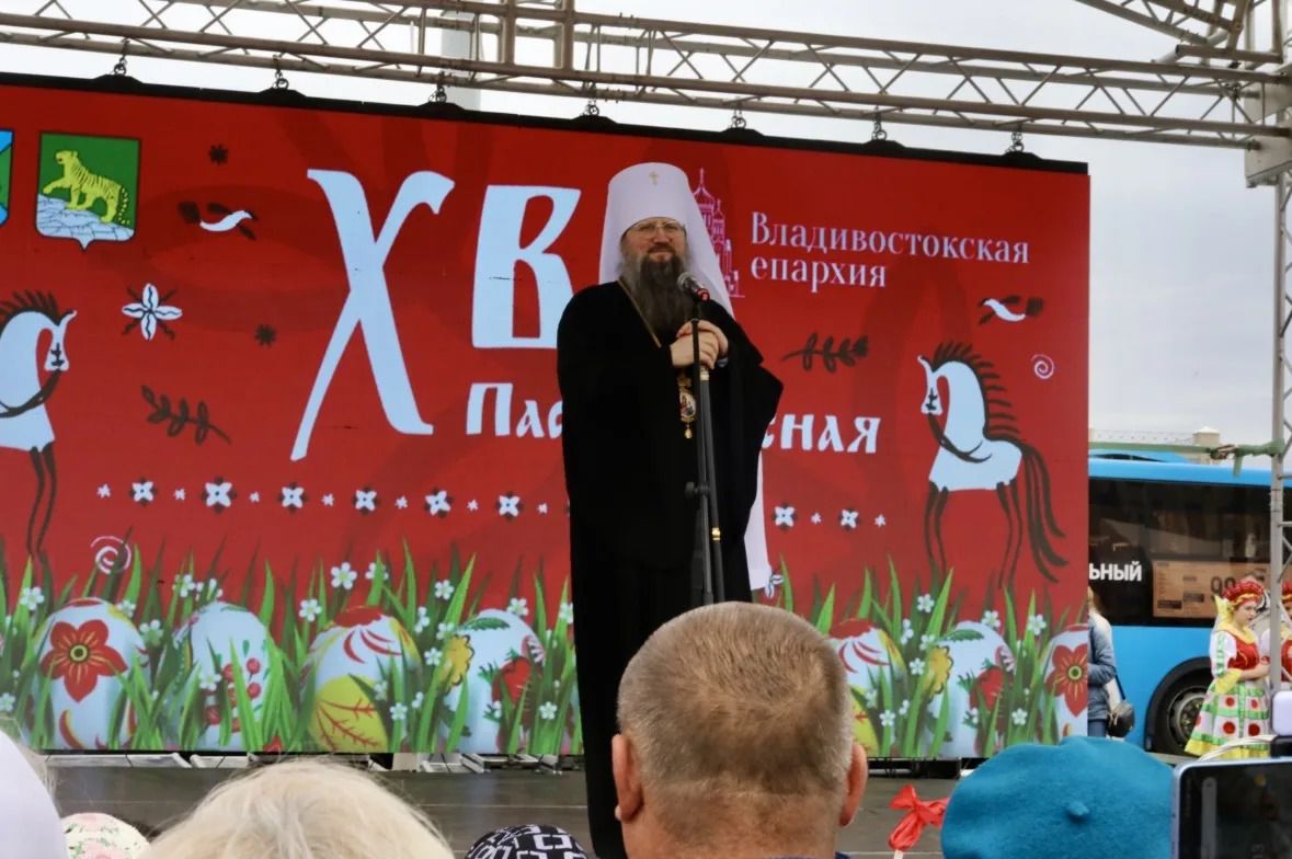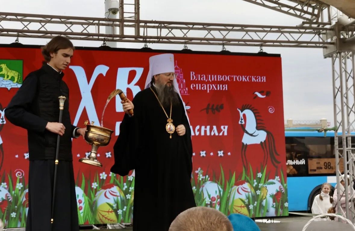 Затем на центральной площади стартовала концертная программа с участием творческих коллективов Владивостока. Правящий архиерей поздравил всех с Пасхой Христовой, отметив, что это праздник света и победы добра над злом.