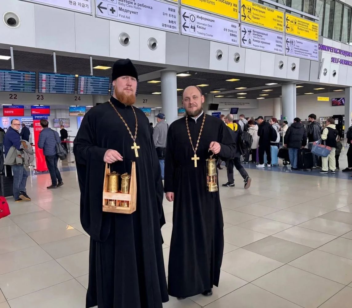 Сегодня, 13 апреля, в аэропорт Владивостока прибыл рейс из Москвы, которым в приморскую столицу доставили Благодатный огонь. Святыню встретили благочинный Никольского благочиния иерей Михаил Тутаев и руководитель миссионерского отдела Владивостокской епархии иерей Дионисий Ищенко.