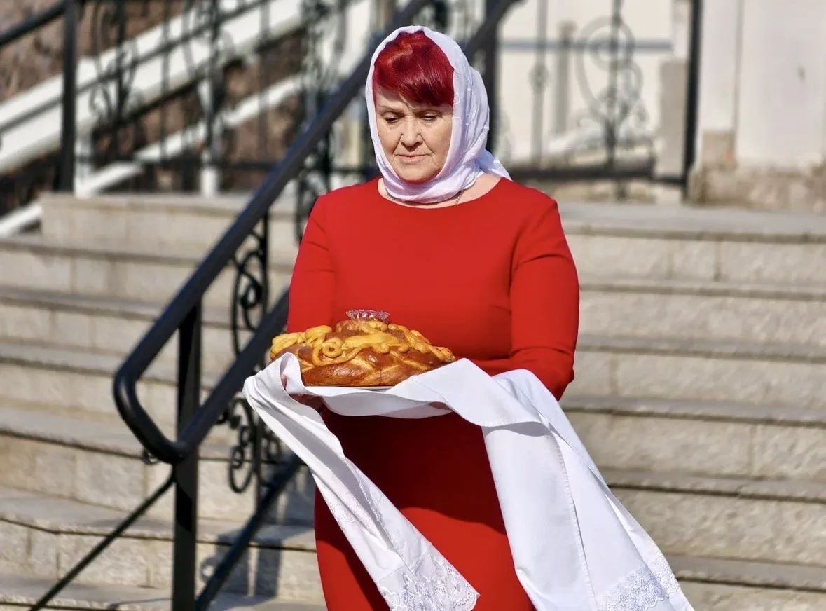На входе в храм архипастыря гостеприимно хлебом-солью встретили прихожане.