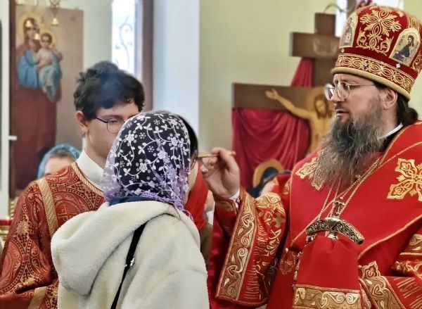 За богослужением владыка Павел совершил чин освящения хлеба, вина и елея. Все молящиеся были помазаны освященным елеем.