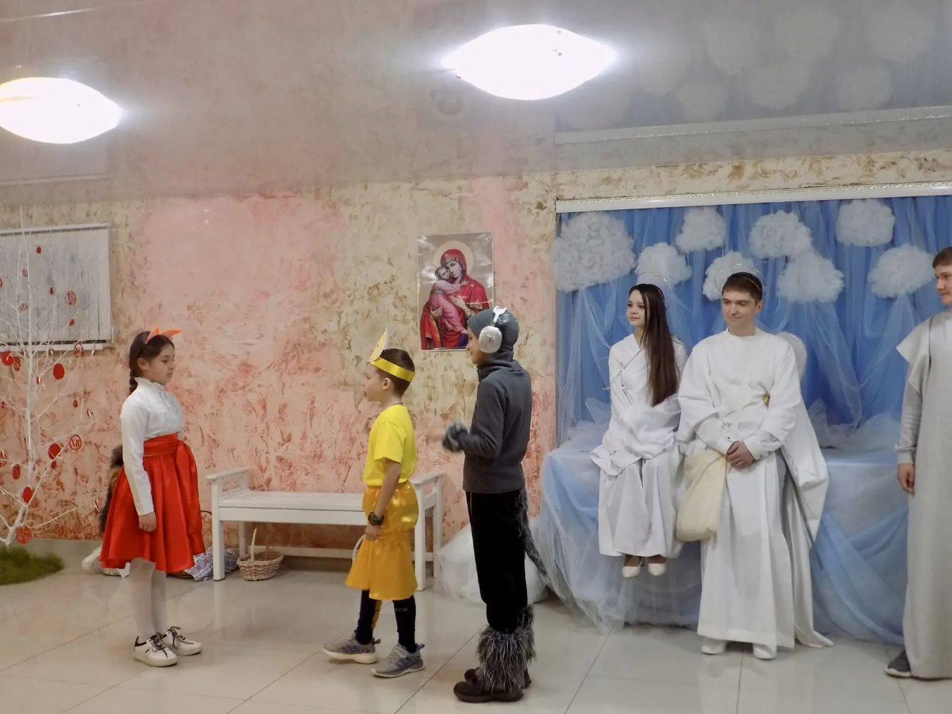 В перерывах между сценками про Колобка, которую исполнили самые юные прихожане, и про прародителей Адама и Еву, зрители приняли участие в православных фантах. Участники конкурса вспоминали великих святых, рассказывали мудрые притчи и изображали библейские сюжеты без слов. Особо гостям запомнился конкурс народных музыкальных инструментов, во время которого каждый мог попробовать себя в роли настоящего музыканта.