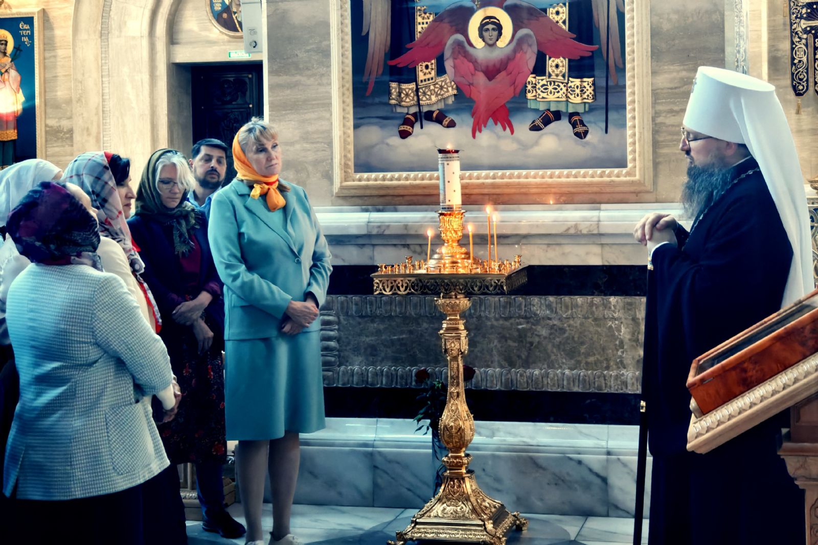 В день перенесения мощей свв. блгвв. кн. Петра и кн. Февронии и Церковного новолетия в Спасо-Преображенском кафедральном соборе состоялась торжественная соборная Литургия