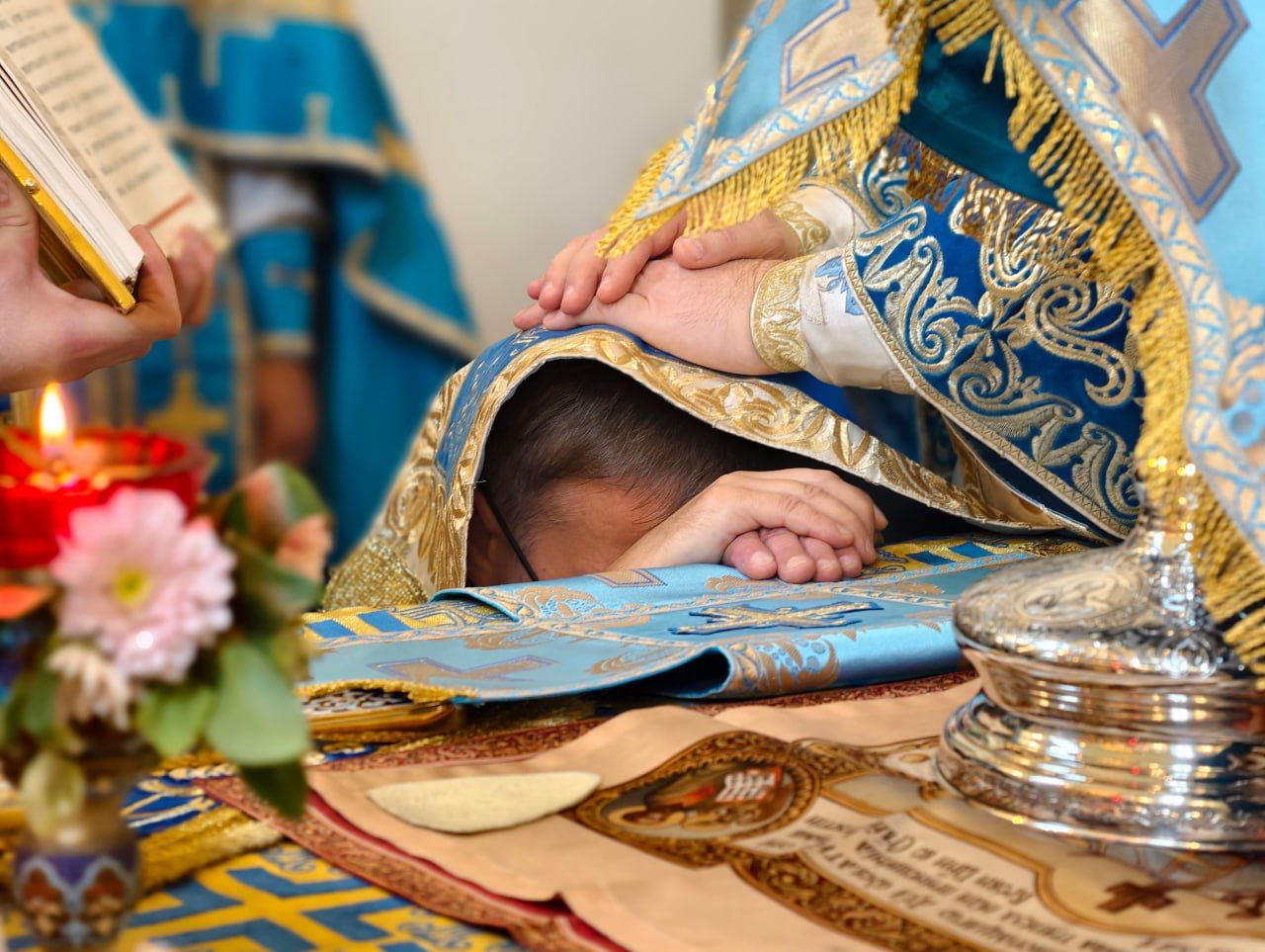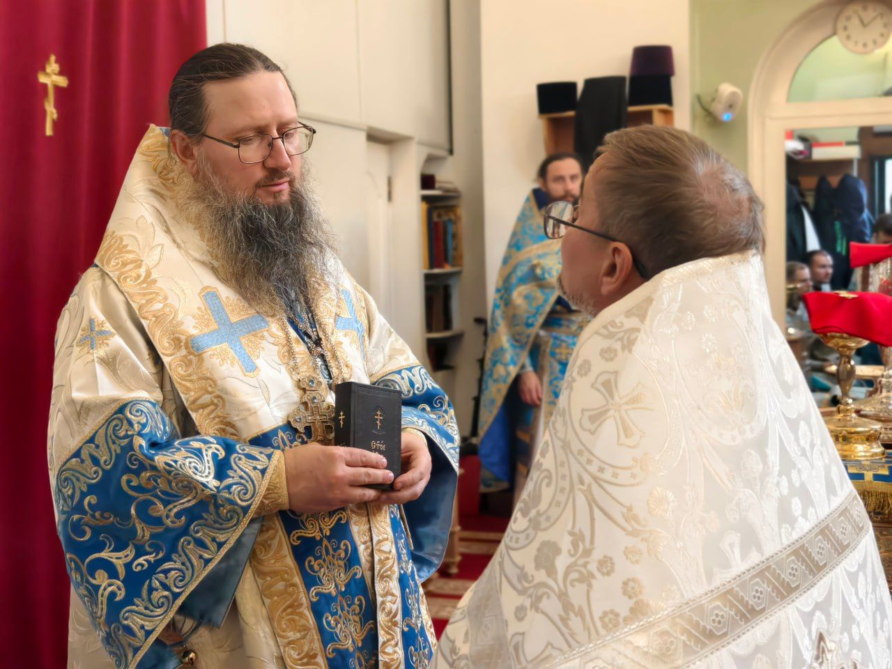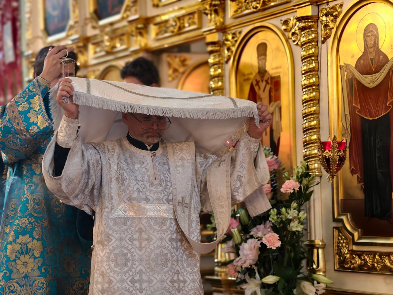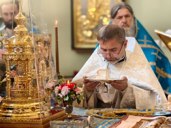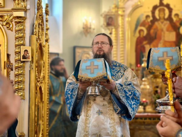 За богослужением была совершена священническая хиротония диакона Сергия Григорьева.