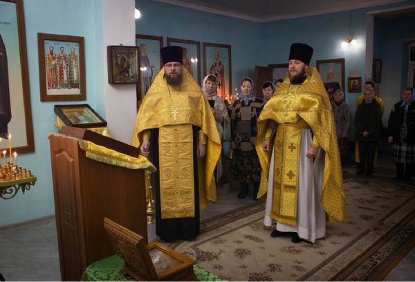Настоятель храма протоиерей Дмитрий Федорин и прихожане торжественно встретили святыню. После отец Дионисий и отец Димитрий совершили Божественную литургию. Завершилось богослужение окроплением святой водой.