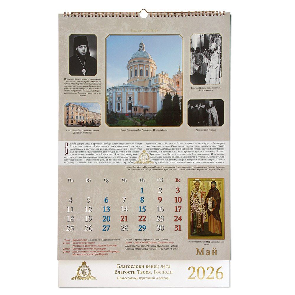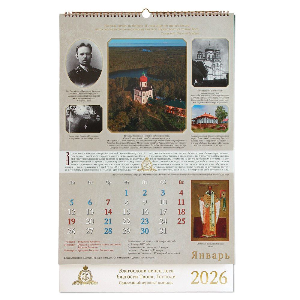Издательство Московской Патриархии выпустило подарочный календарь «Благослови венец лета благости Твоея Господи» на 2026 год, посвященный юбилею Святейшего Патриарха Московского и всея Руси Кирилла.