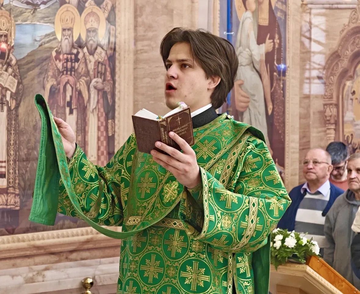 За богослужением митрополит Павел возвел в сан протодиакона диакона Адриана Чунчука, а также наградил иерея Максима Точукова правом ношения палицы.