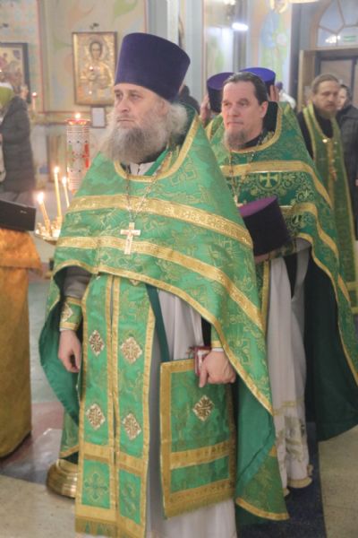 Его Преосвященству сослужили: протоиерей Александр Коваленко, секретарь Находкинской епархии, настоятель Свято–Георгиевского храма, п. Дунай; иерей Роман Капитанюк, благочинный Западного благочиния Находкинской епархии, настоятель храма св. апостола Андрея ЗАТО г. Фокино; настоятели и клирики храмов Находкинской епархии, духовенстово Кафедрального собора.