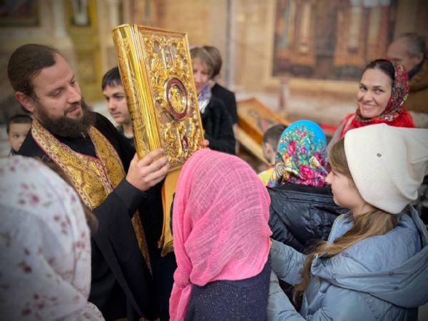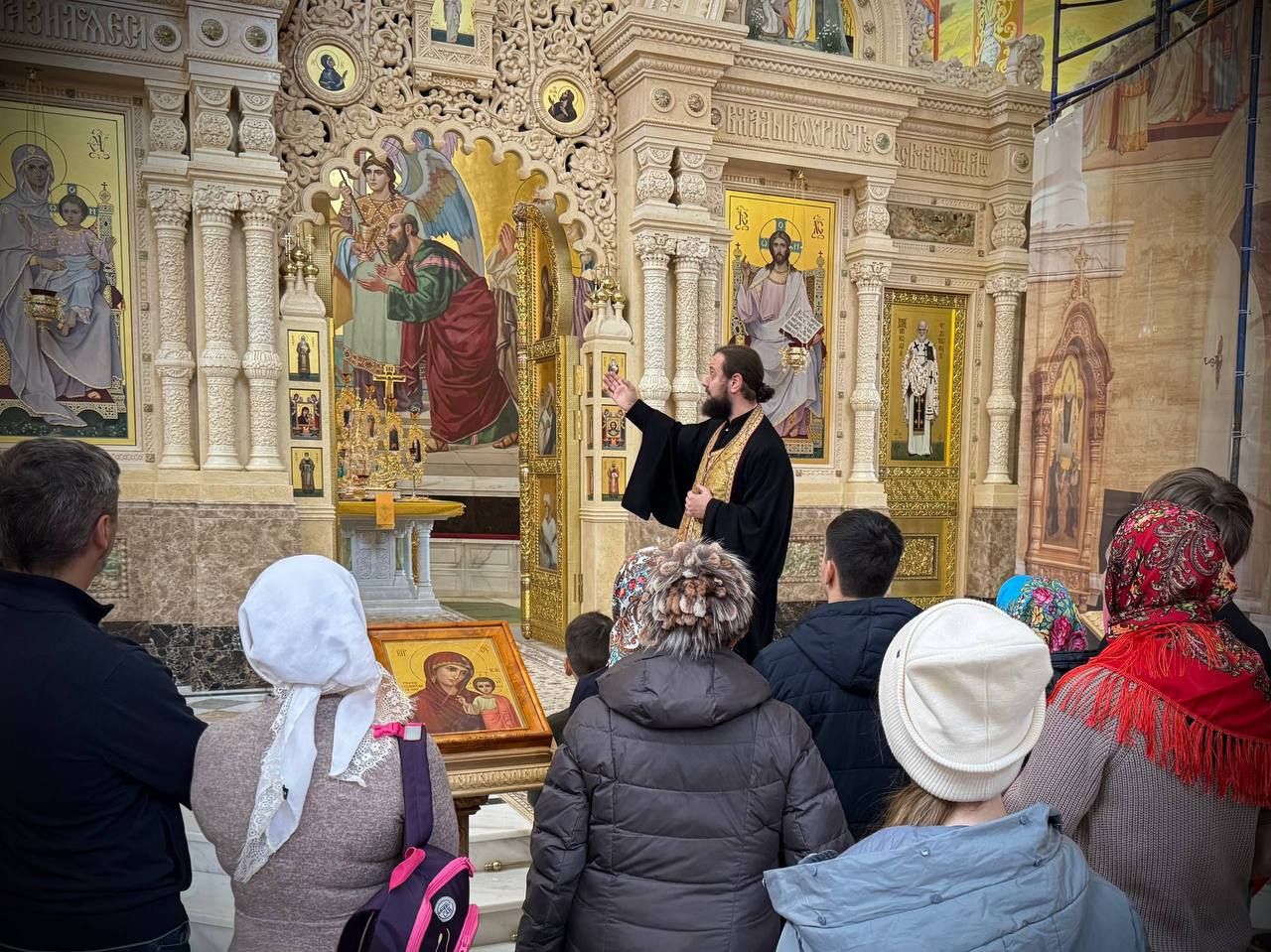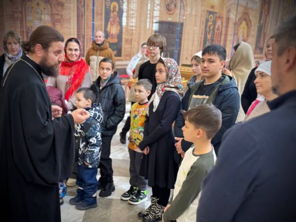 Встреча началась с экскурсии по собору, которую провел иерей Владимир Ковальчук, руководитель отдела по вопросам семьи, защиты материнства, отцовства и детства Владивостокской епархии. Отец Владимир рассказал ребятам и их родителям об устройстве храма, его святынях и убранстве. Также батюшка познакомил гостей с важными богослужебными предметами и показал алтарь.