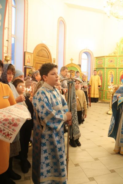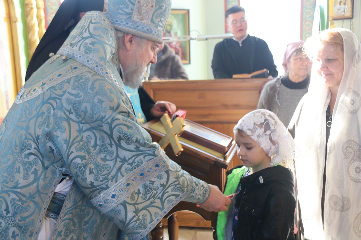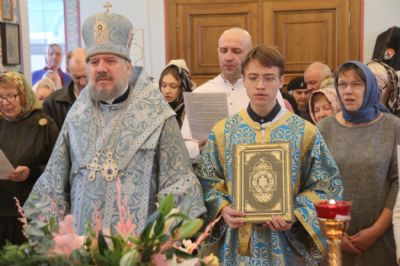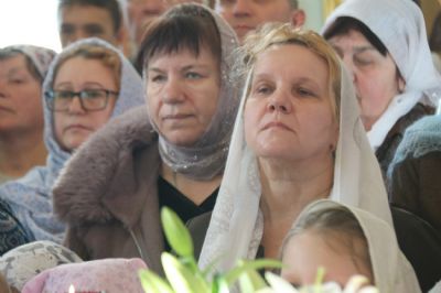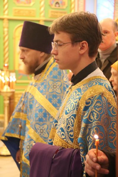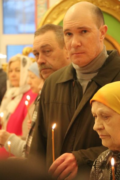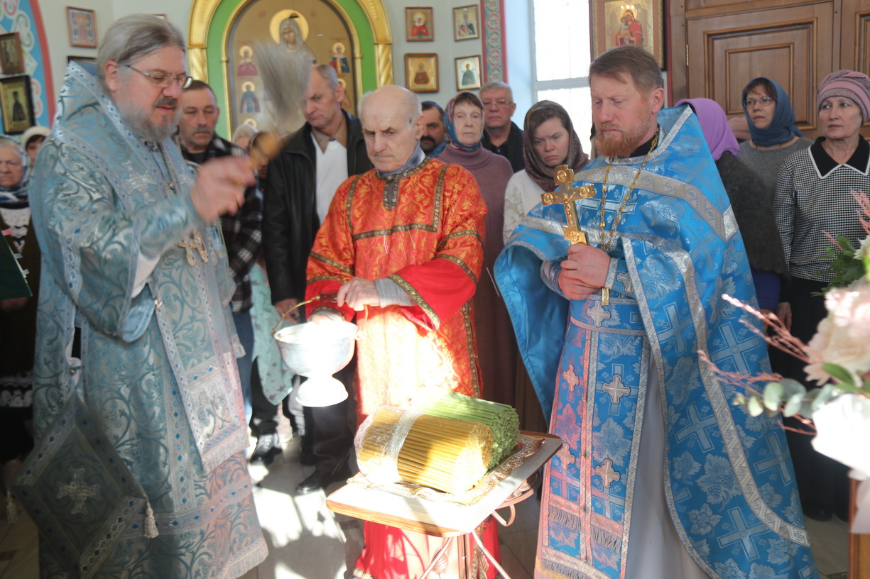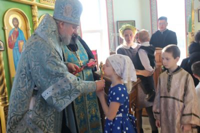 По заамвонной молитве епископ Николай, в сослужении священства, возглавил праздничное славление и совершил чин освящения "сретенских" свечей.