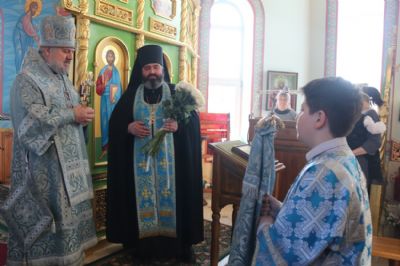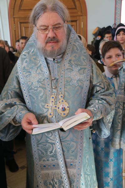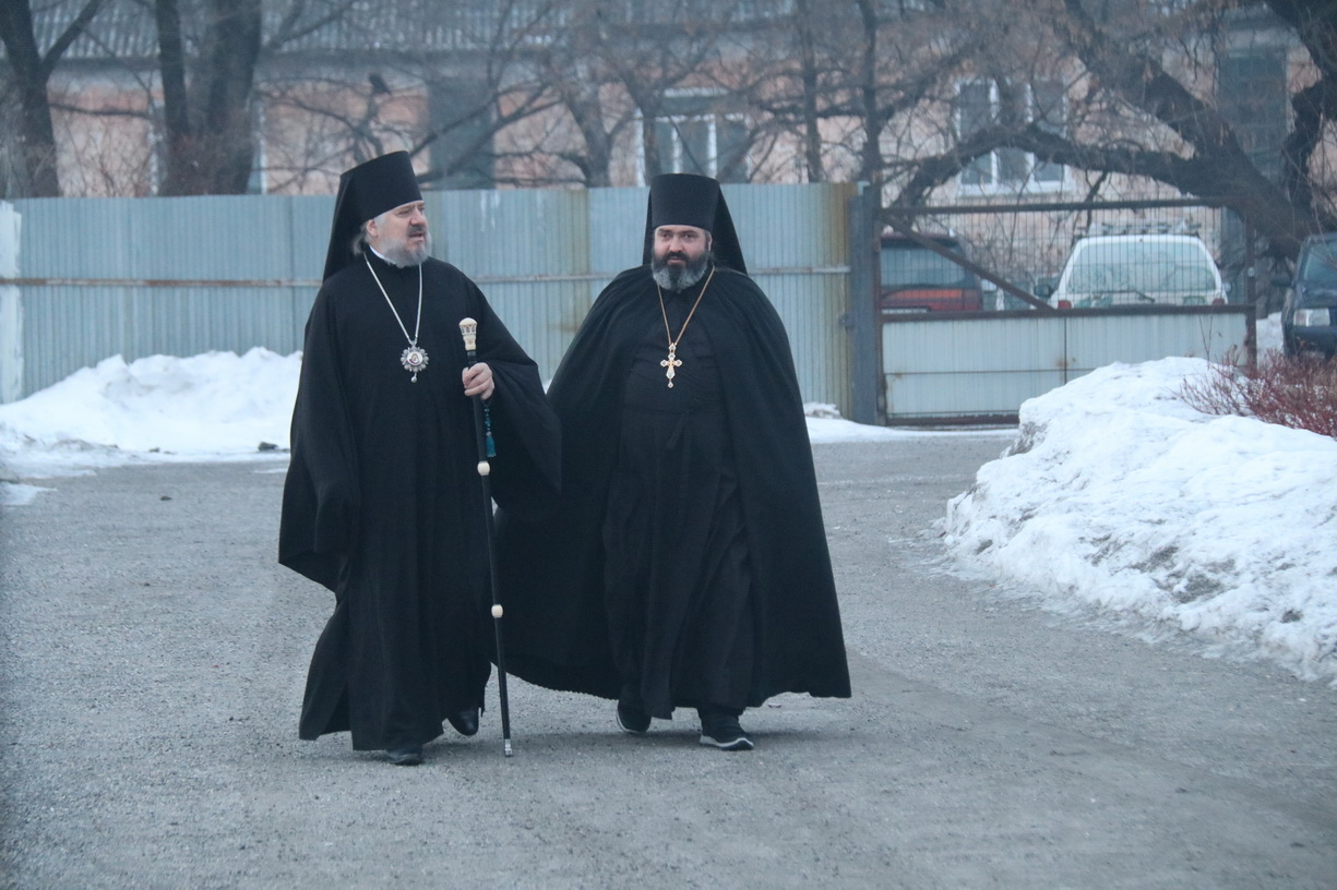 Его Преосвященству сослужили: иеромонах Силуан (Березовский), настоятель храма; иерей Андрей Шкулипа, настоятель храма прп. Сергия Радонежского с. Сергеевка и иерей Андрей Калнин благочинный Казанского Кафедрального собора г. Находки.