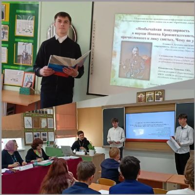 В секции No 4 «Духовное наследие великой Руси и современность» Анатолий Олейник, ученик 10 класса «СОШ N10 с углубленным изучением английского языка» представил свою работу по теме «Необычайная популярность народе Иоанна Кронштадтского, причисленного к лику святых Чему он учил?» Его работа заняла 3 место.
