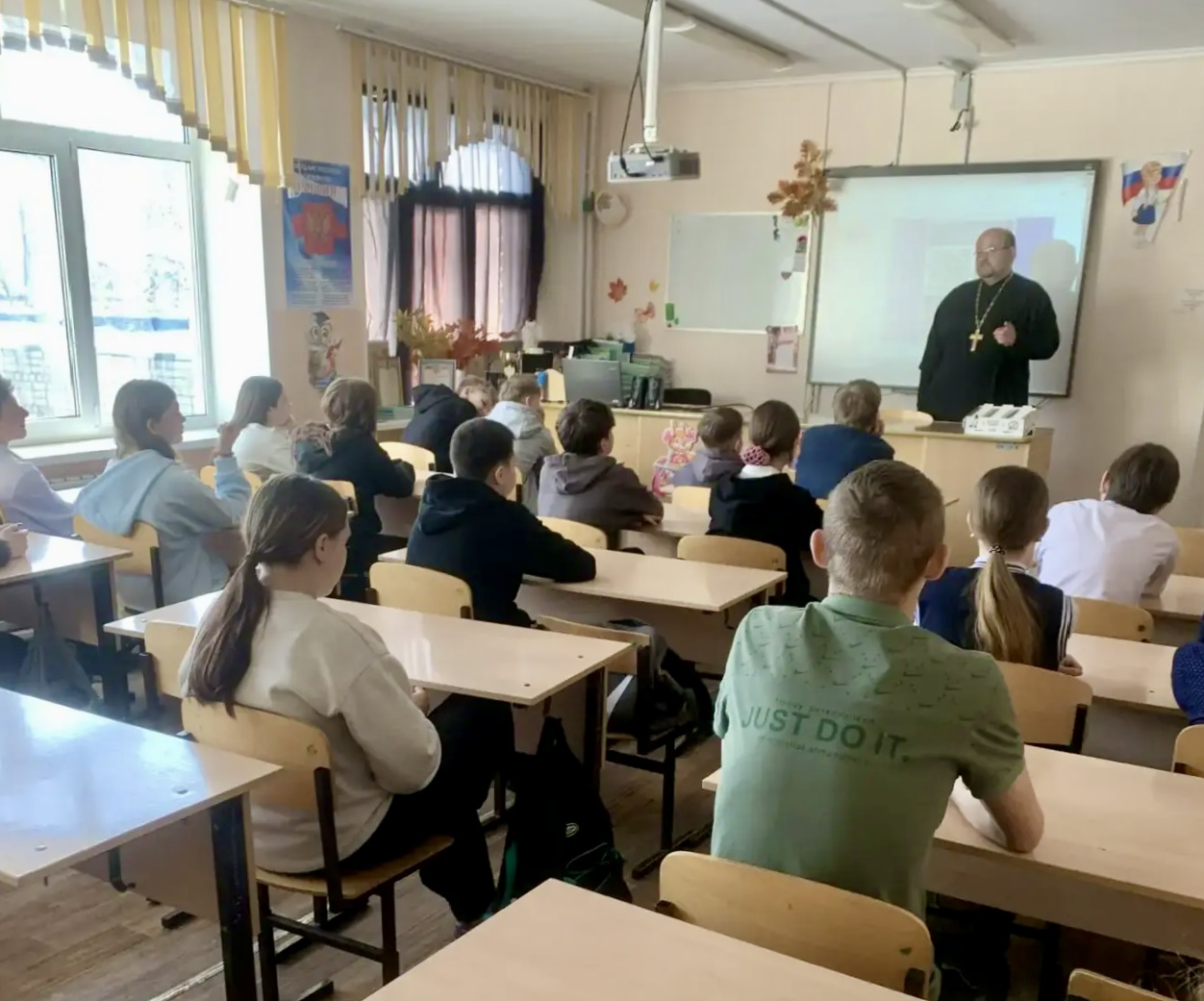 В школе № 256 г. Фокино руководитель отдела Религиозного образования и катехизации Находкинской Епархии иерей Роман Капитанюк встретился с учениками 7 «А»класса.