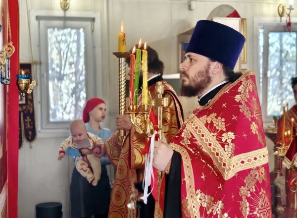 Даже в скромном помещении временного храма богослужение возводит молящихся за границы земного бытия. Воскресший Христос Господь прославляется пасхальными песнопениями. Вновь звучит Пасхальный канон, в третьей песне которого Церковь исповедует бессмертие, которое Своей крестной жертвой Христос приобрёл для всех верующих в Него: