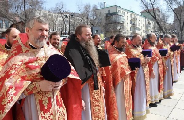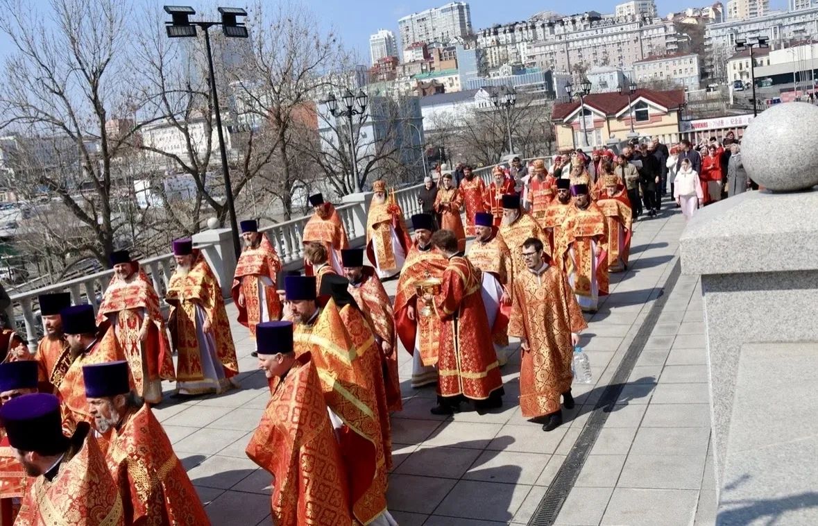 18 апреля, в субботу Светлой седмицы, в Спасо-Преображенском соборе г. Владивостока состоялась соборная Божественная литургия. Богослужение возглавили митрополит Владивостокский и Приморский Павел, митрополит Вениамин (Пушкарь), епископ Находкинский и Преображенский Николай, епископ Арсеньевский и Дальнегорский Гурий.