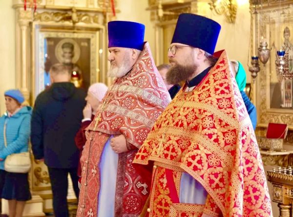 Главе митрополии сослужили: благочинный Никольского благочиния и настоятель храма иерей Михаил Тутаев, протоиерей Алексей Сабанский, протоиерей Димитрий Федорин, иероманах Марк (Корнилов), иерей Александр Жилин, иерей Сергий Зверев, иерей Сергий Григорьев, протодиакон Адриан Чунчук и диакон Василий Талько.