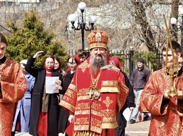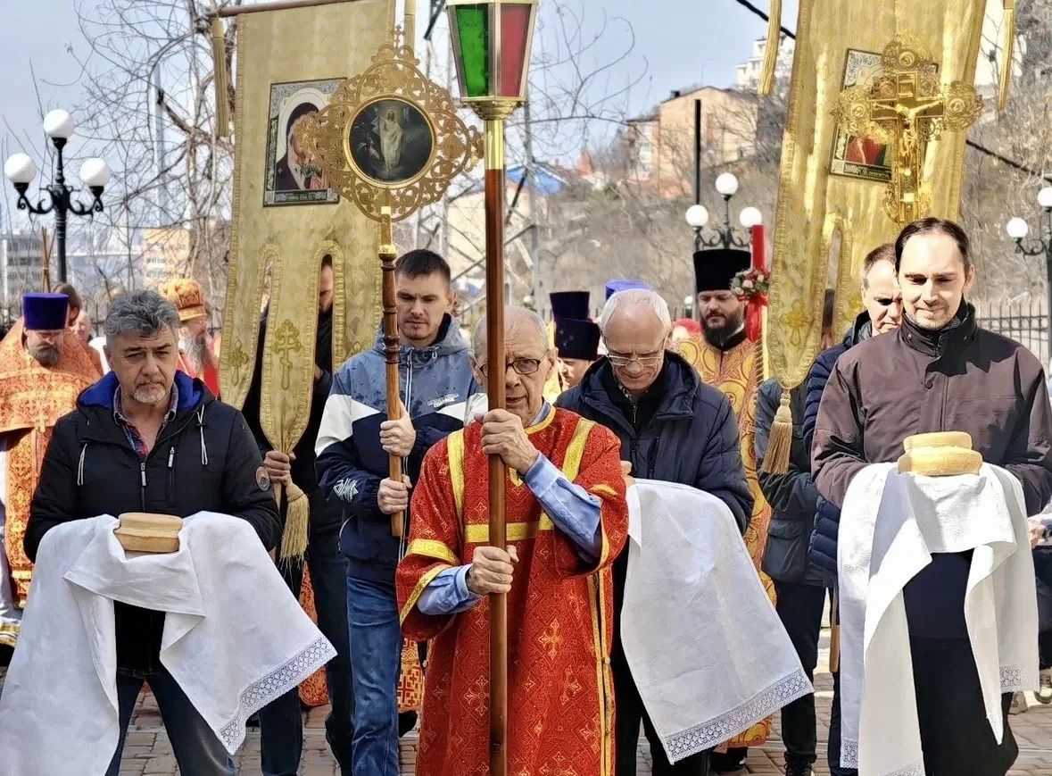 В завершение торжественного богослужения состоялся крестный ход, во время которого многочисленные верующие с молитвенным пением обошли вокруг старейшего храма города. В атмосфере всеобщего духовного единения священнослужители кропили собравшихся святой водой, символизируя очищение и благословение на новые добрые дела.