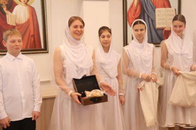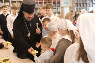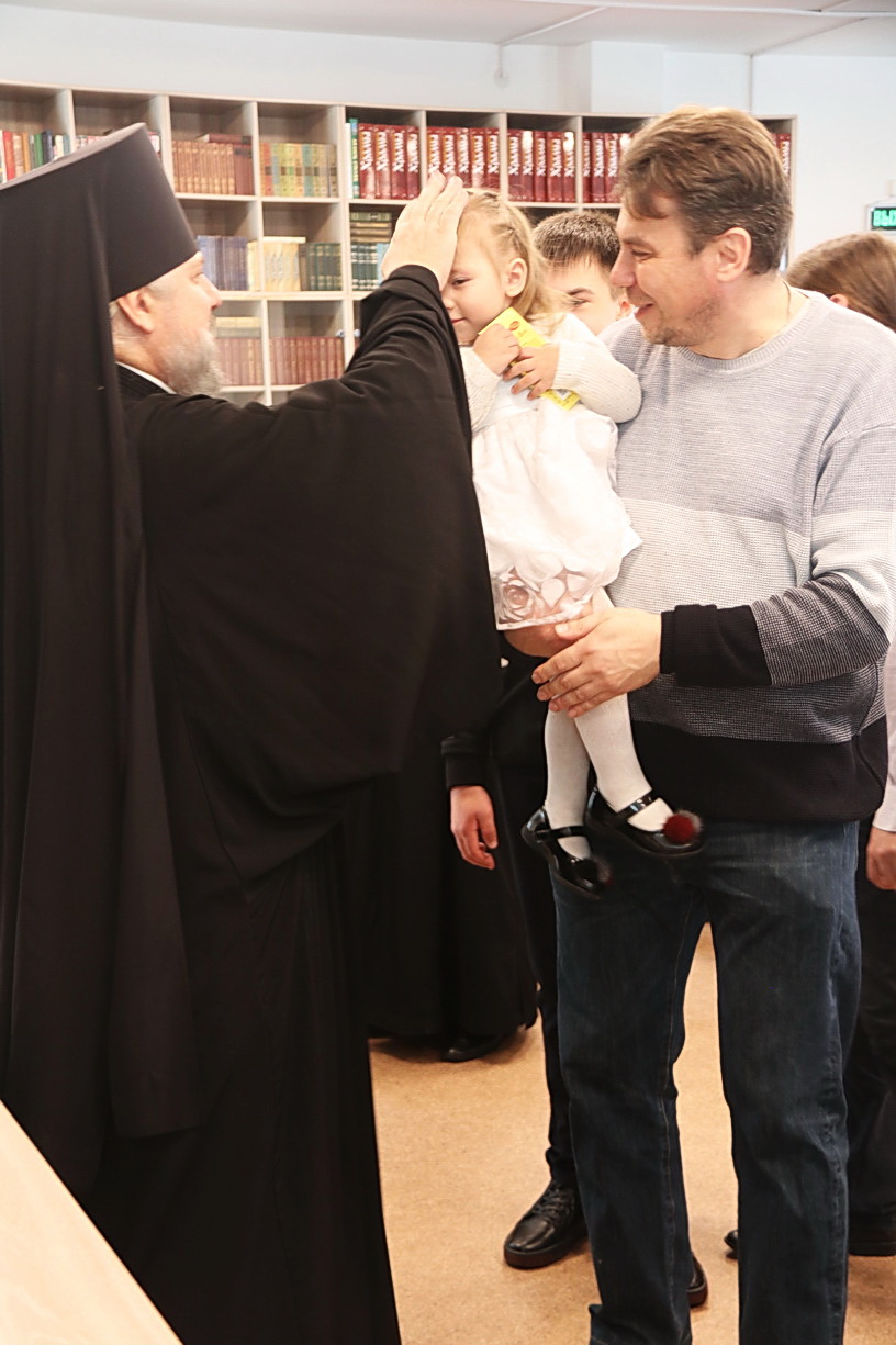 В заключение епископ Находкинский и Преображенский поздравил присутствующих со Святыми днями и раздал детям сладкие подарки.