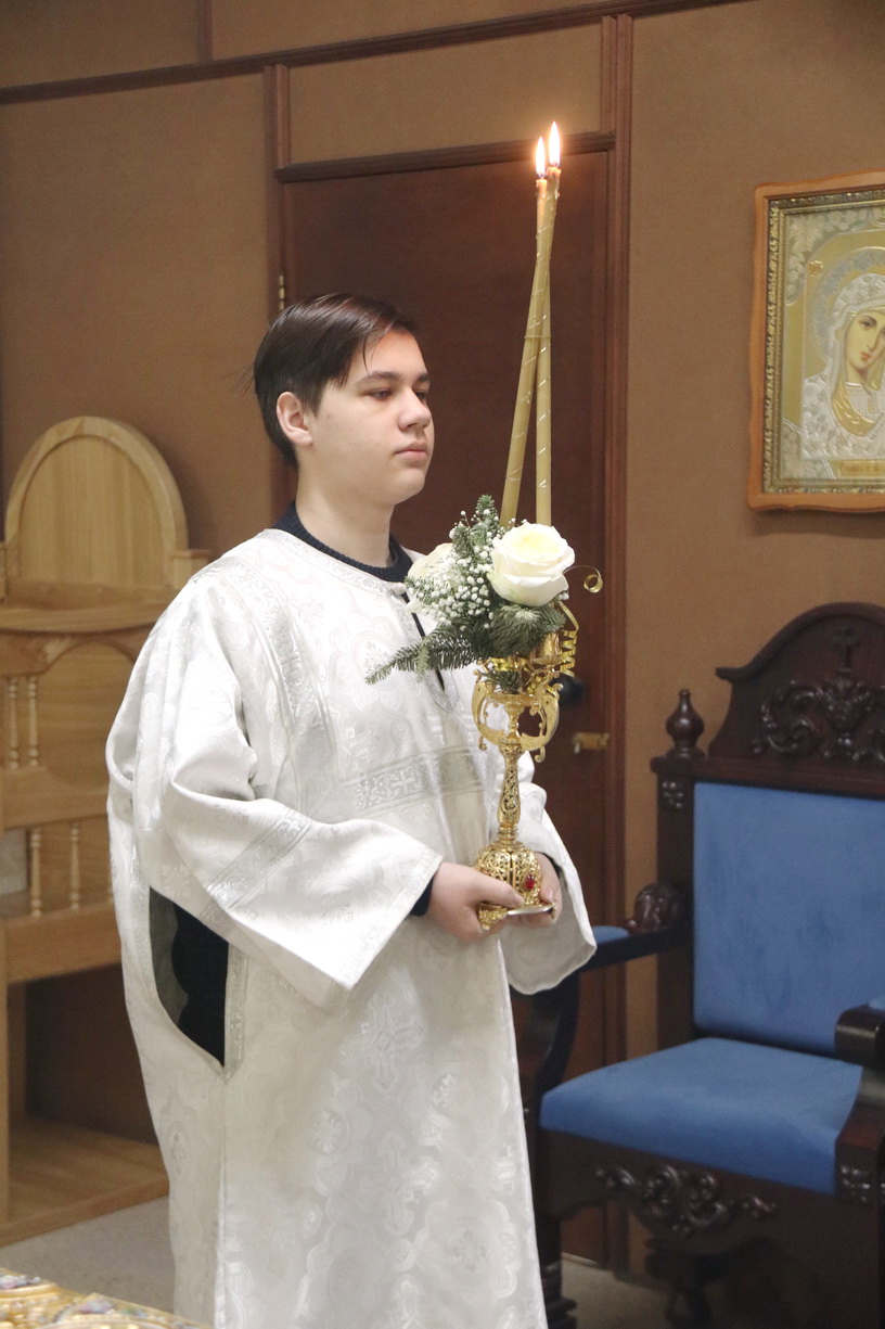 Его Преосвященству сослужили: иерей Андрей Калнин; иерей Виталий Шаркеев; иерей Андрей Попов; иеромонах Ермоген (Крещенко) и иерей Илия Гречишников.